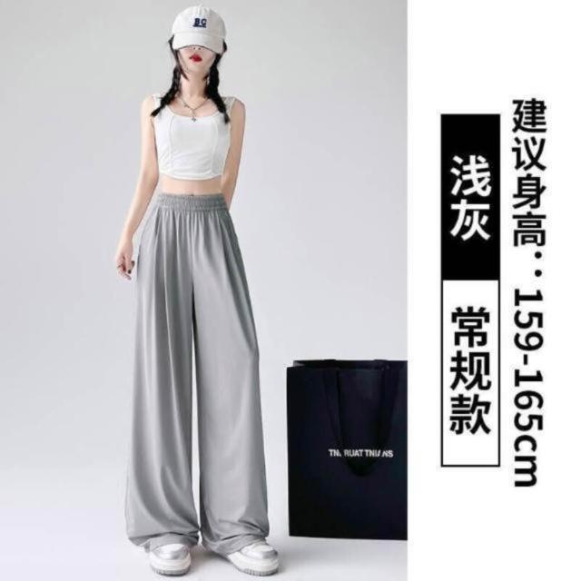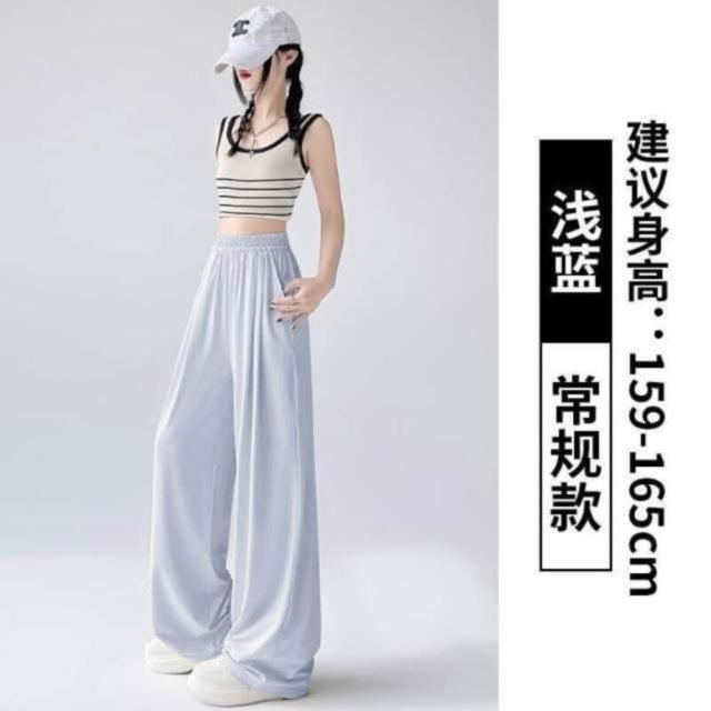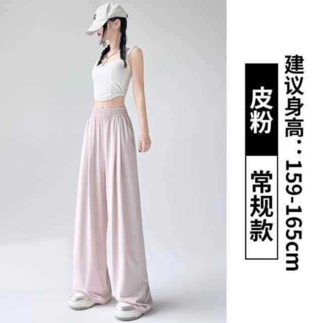 冰絲褲女高腰直筒涼感透氣顯瘦垂墜休閒褲冰絲防曬闊腿褲女春夏高腰休閑運動速幹防蚊涼涼薄款面膜褲- 涼感機能冰絲褲速乾抗皺顯瘦垂墜遮肉無束縛輕薄
