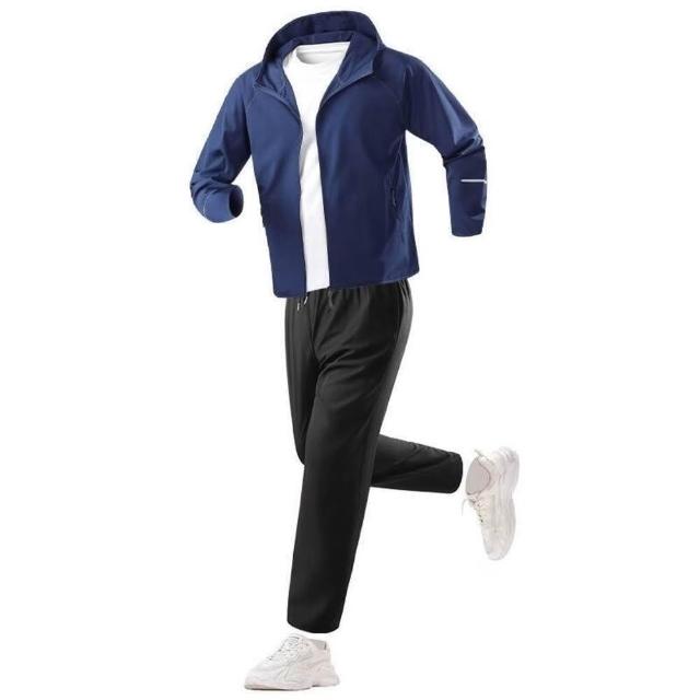運動套裝韓版寬鬆顯瘦速乾透氣兩件式短袖休閒健身短褲防曬套裝連帽夾克長褲兩件套男戶外防紫外線皮膚衣套裝防曬衣套裝速乾衣男女