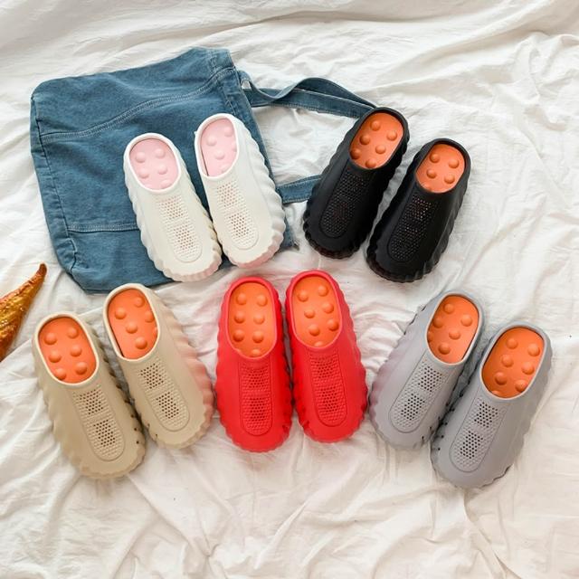 女士拖鞋顆粒按摩包頭拖鞋拖鞋女夏季輕量透氣增高防水厚底拖鞋百搭簡約一字拖懶人鞋止滑耐磨涼拖鞋媽媽百搭外出拖鞋舒適室內軟底拖鞋運動涼鞋休閒鞋平底鞋