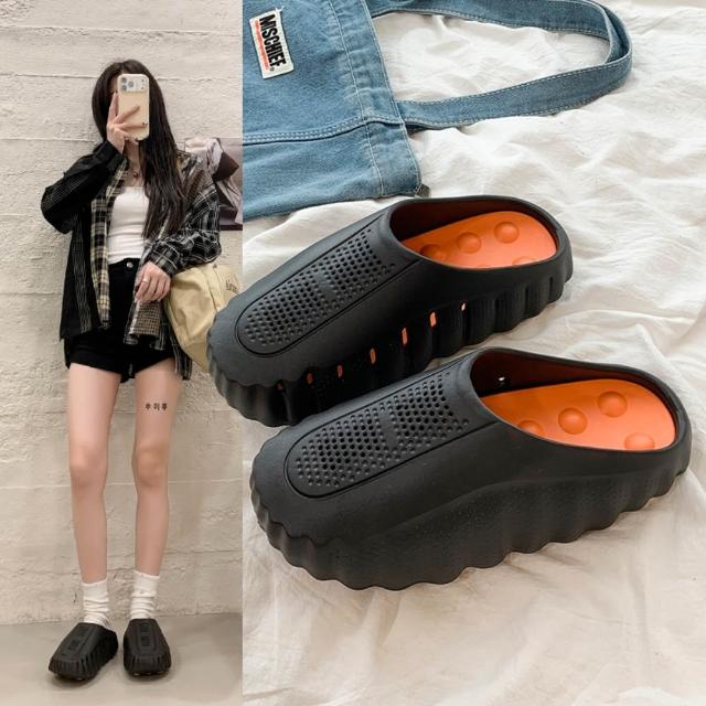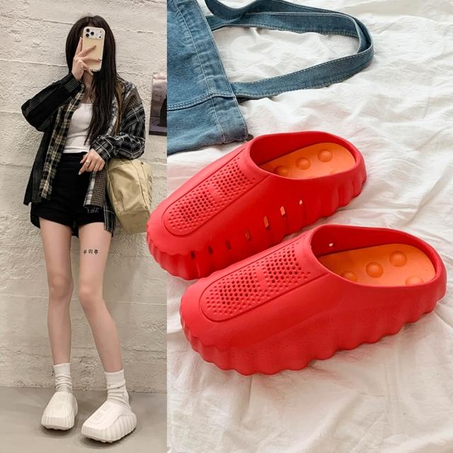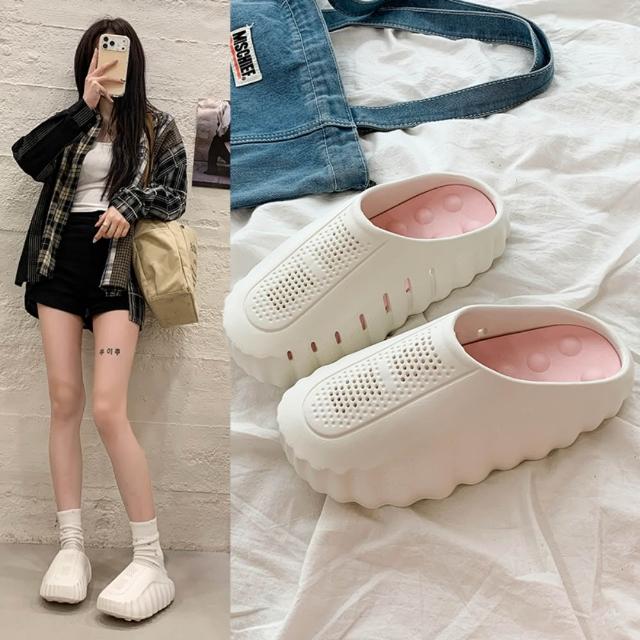 女士拖鞋顆粒按摩包頭拖鞋拖鞋女夏季輕量透氣增高防水厚底拖鞋百搭簡約一字拖懶人鞋止滑耐磨涼拖鞋媽媽百搭外出拖鞋舒適室內軟底拖鞋運動涼鞋休閒鞋平底鞋