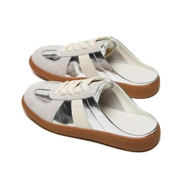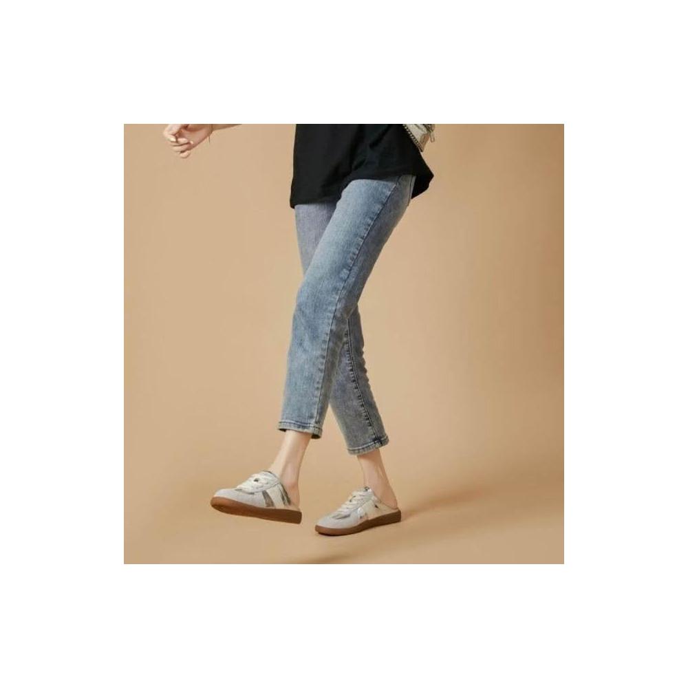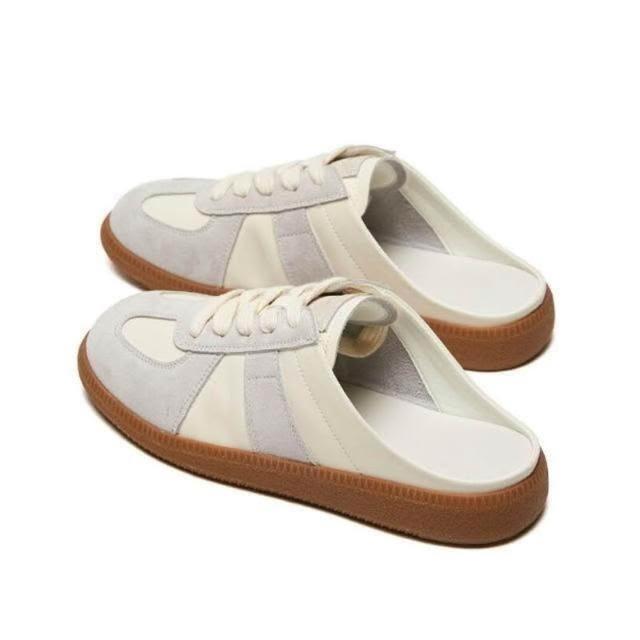 拖鞋 穆勒鞋女厚底大尺碼時尚包頭半拖鞋女春秋外穿一腳蹬懶人小白休閑德訓鞋新款時尚百搭半拖帆布鞋止滑耐磨可外穿休閒鞋寬楦女鞋