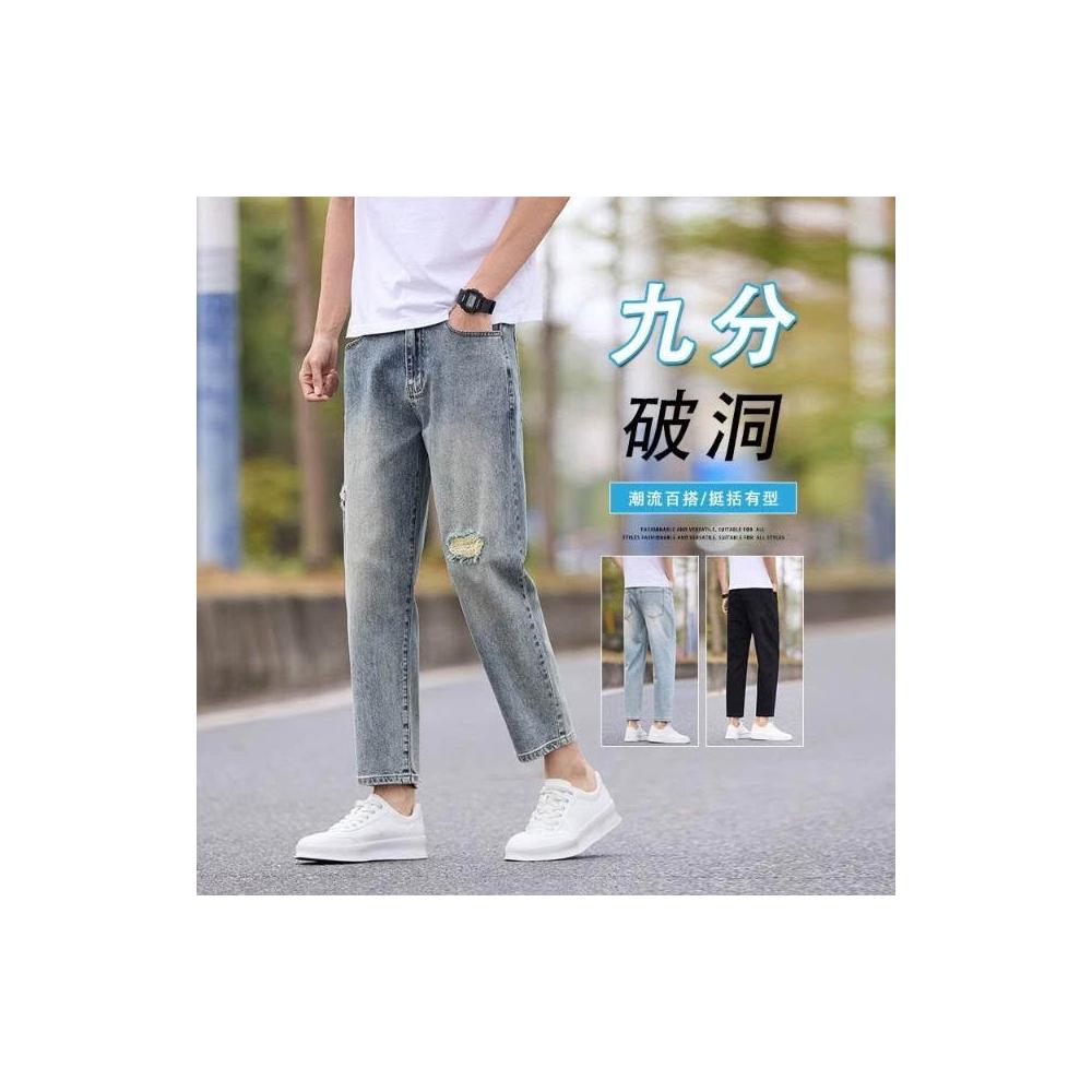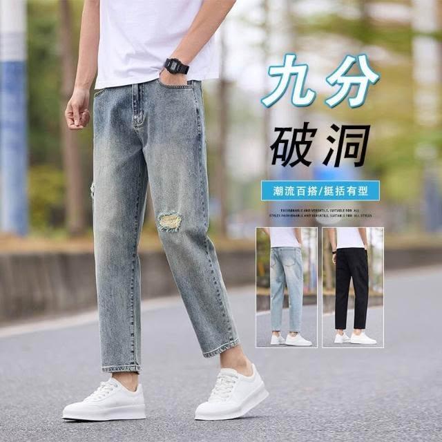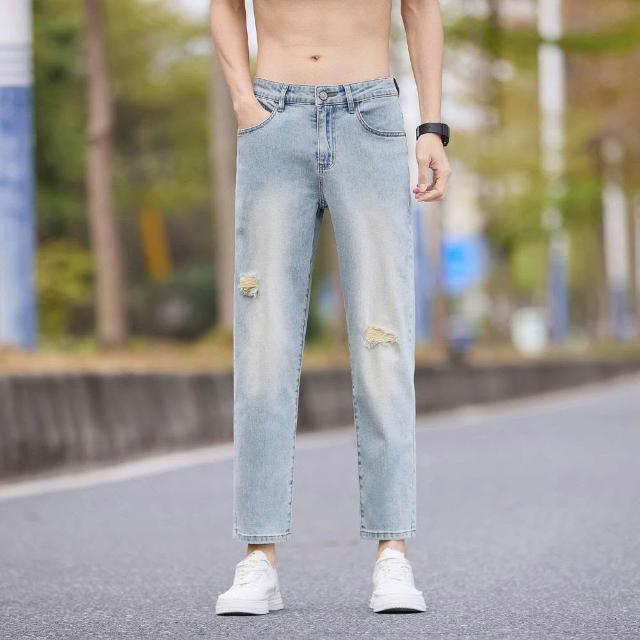 牛仔褲男夏季薄款冰絲速乾涼感牛仔褲大尺碼寬鬆顯瘦垂感透氣低腰直筒長褲柔軟舒適彈性耐磨男生工作褲彎刀鬼洗闊腿休閒百搭寬褲