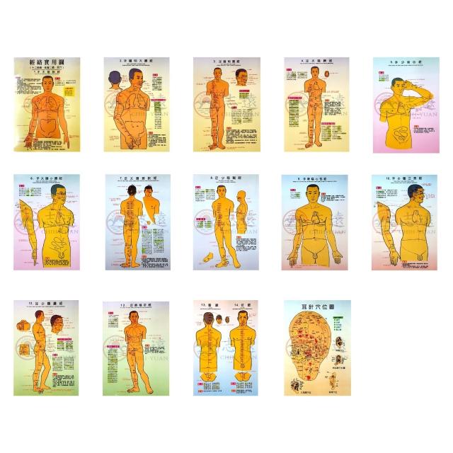 經絡實用圖 一套7張(十二經絡 任督二脈 耳穴 圖卡)
