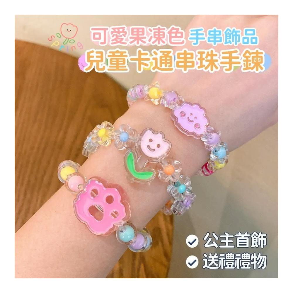 ❤️Annie❤️兒童卡通串珠手鍊 女童飾品 公主手鍊 果凍色串珠 兒童手鍊 女童配件 學生首飾 寶寶手環 兒童禮物