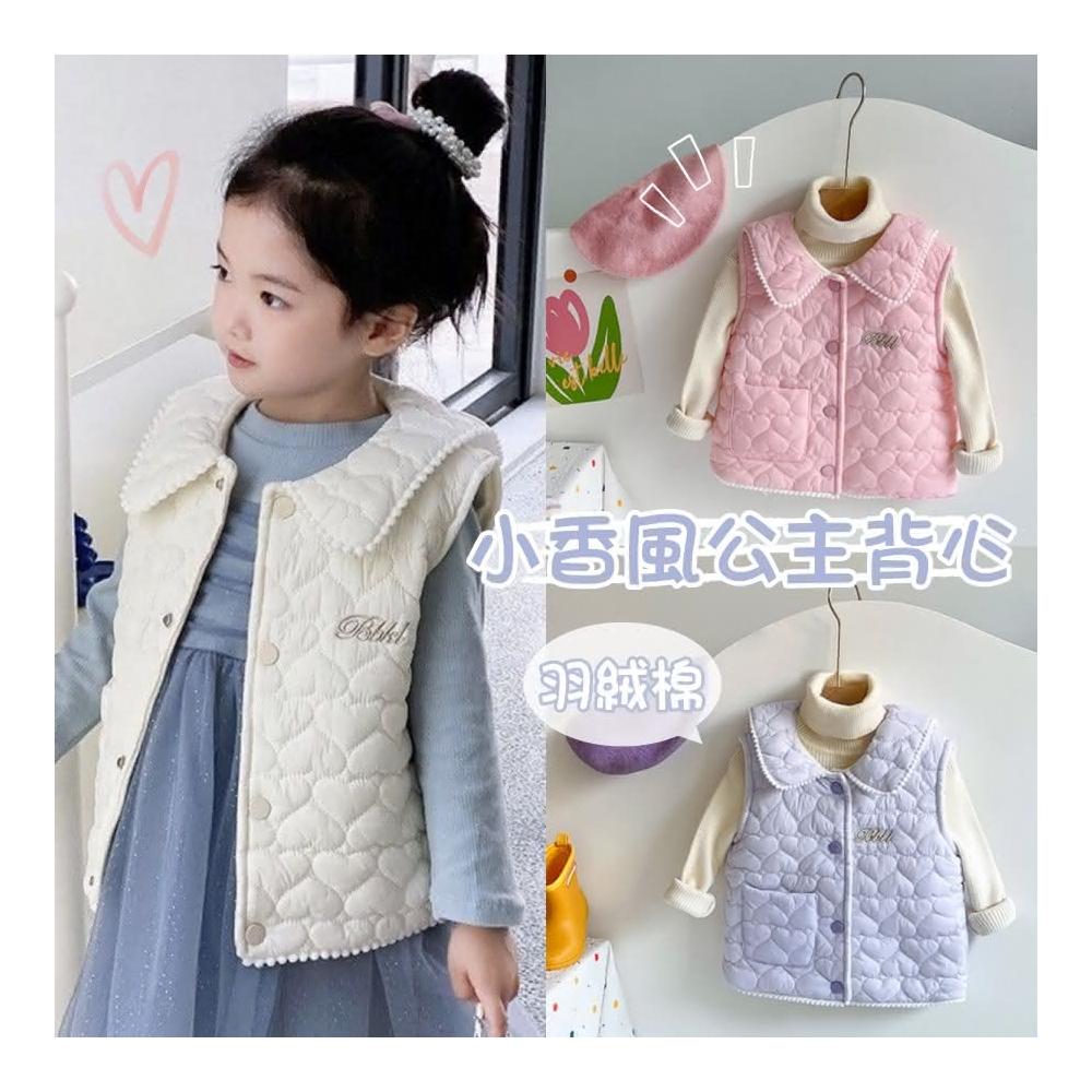 ❤️Annie❤️羽絨棉小香風公主背心 兒童背心 冬季保暖背心 寶寶背心 女童背心 嬰幼兒加厚背心 童裝 加絨外穿外套