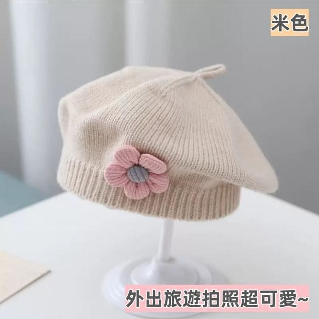 〔台灣現貨〕花朵貝雷帽 兒童貝雷帽 兒童針織帽 女童 小童 女嬰兒 女童毛線帽 女童畫家帽 可愛小花朵❤️Annie❤️