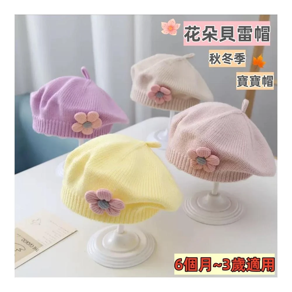 〔台灣現貨〕花朵貝雷帽 兒童貝雷帽 兒童針織帽 女童 小童 女嬰兒 女童毛線帽 女童畫家帽 可愛小花朵❤️Annie❤️
