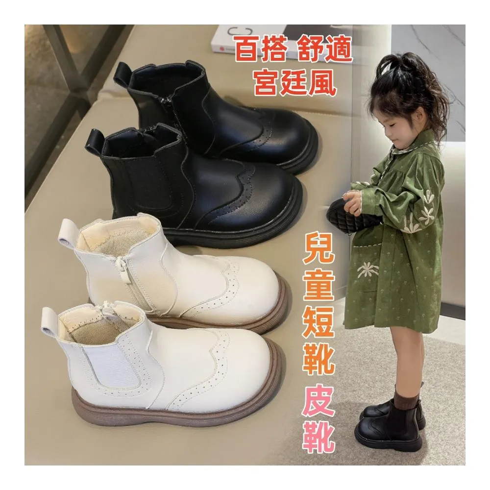 ❤️Annie❤️女童公主靴 童鞋 兒童靴子 女童靴子 黑色 米色 女童鞋 公主鞋 短靴 皮靴 中筒靴 馬丁靴 宮廷風