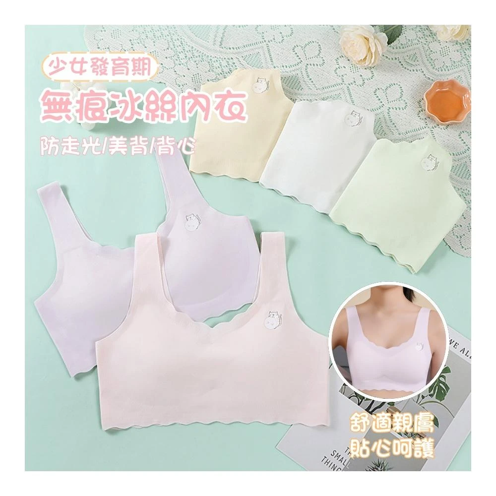 ❤️Annie❤️無痕冰絲少女發育期內衣 兒童無痕內衣 防走光吊帶背心 女童背心 無鋼圈內衣 美背背心 學生內搭 透氣