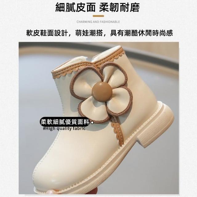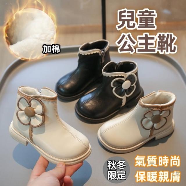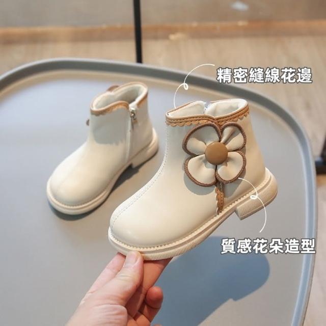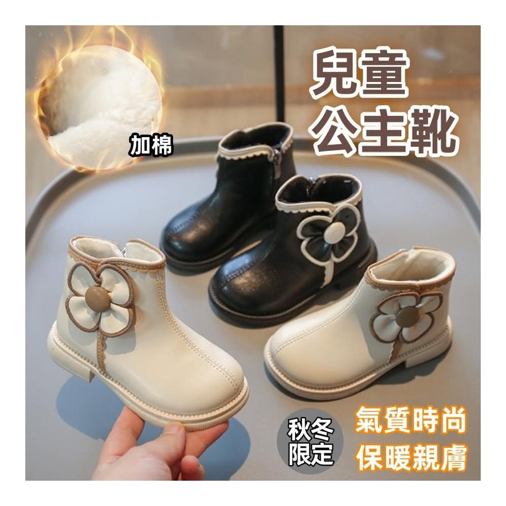 ❤️Annie❤️女童公主靴 童鞋 兒童靴子 女童靴子 黑色 米白色 女童鞋 短靴 皮靴 中筒靴 馬丁靴 秋冬加棉 花朵