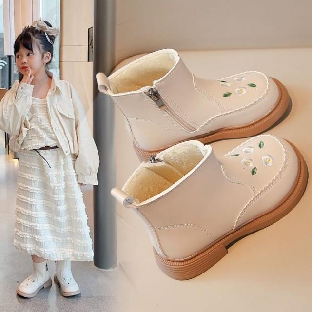 ❤️Annie❤️刺繡花朵女童短靴 童鞋 兒童秋冬季靴子 女童鞋 公主鞋 兒童短靴 中筒靴 馬丁靴 馬靴 皮靴 中大童
