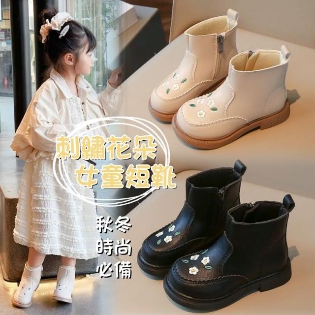 ❤️Annie❤️刺繡花朵女童短靴 童鞋 兒童秋冬季靴子 女童鞋 公主鞋 兒童短靴 中筒靴 馬丁靴 馬靴 皮靴 中大童