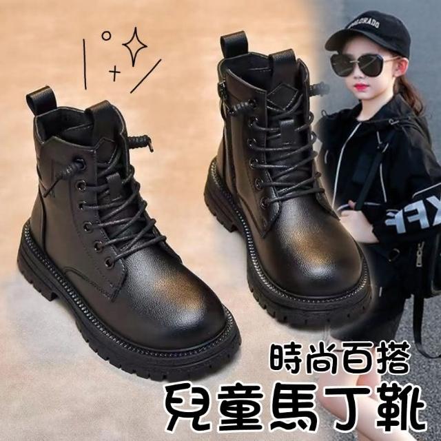 ❤️Annie❤️兒童時尚百搭馬丁靴 童鞋 黑色皮靴 中筒靴 休閒短靴 兒童秋冬季靴子 馬靴 中大童 男童 女童