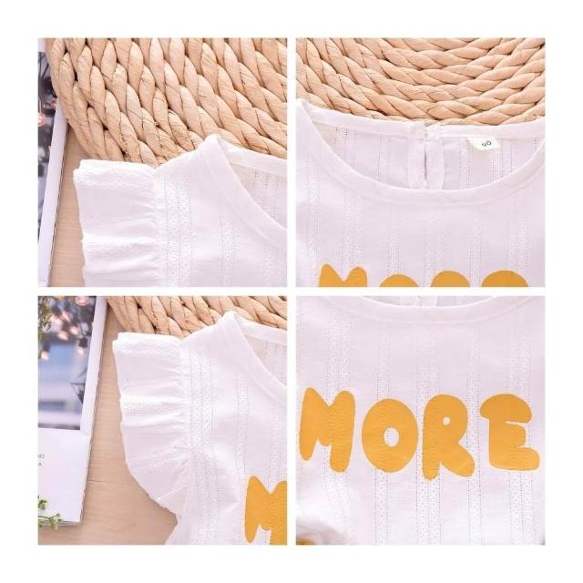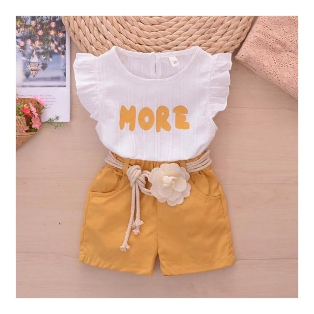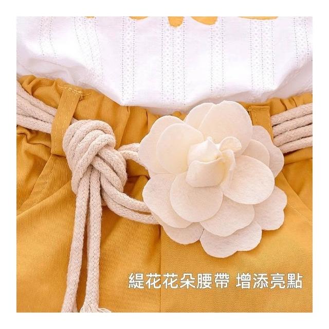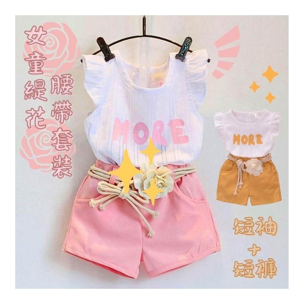 ❤️Annie❤️女童緹花短袖花朵腰帶套裝 童裝 兒童休閒套裝 女童套裝 兒童短袖 兒童短褲 女童衣服 兩件套