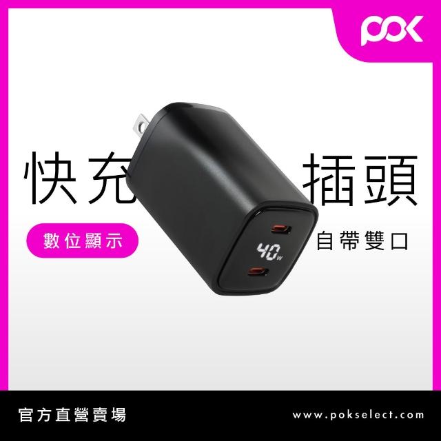POK 波克 40W氮化鎵電源供應器 氮化鎵 數據顯示 智慧控溫 雙口同充 安全不過熱