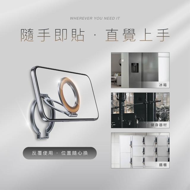 - 雙面磁吸支架,背貼桌放都可用