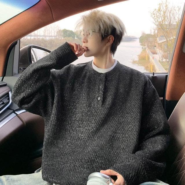 台灣出貨 寬松上衣 男長袖t恤 亨利領长袖男 男生打底衫 休閒上衣男 套頭大學T 男生上衣 亨利領大學T 寬鬆大學T 大學T 長袖大學T