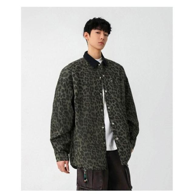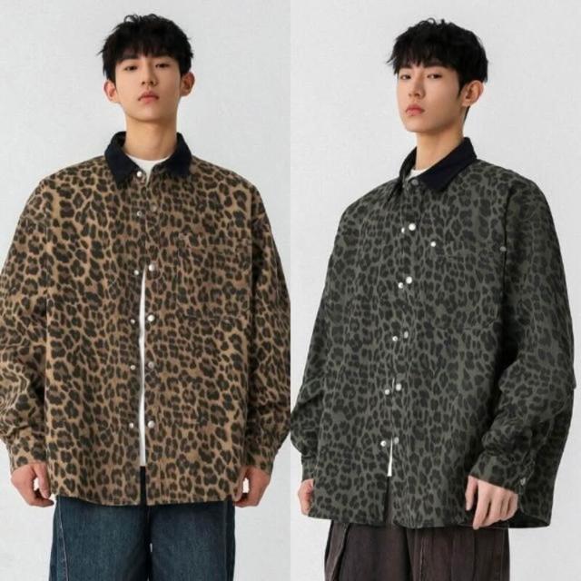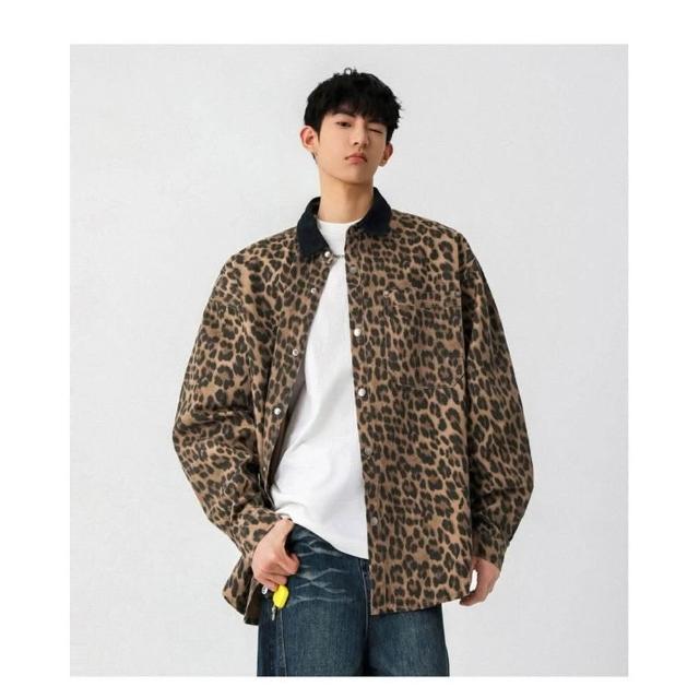 襯衫男polo衫男薄款長袖豹紋襯衫外套工作通勤休閒防皺上班運動寬鬆免燙男裝大碼耐磨舒適透氣翻領美式青少年春秋長袖上衣