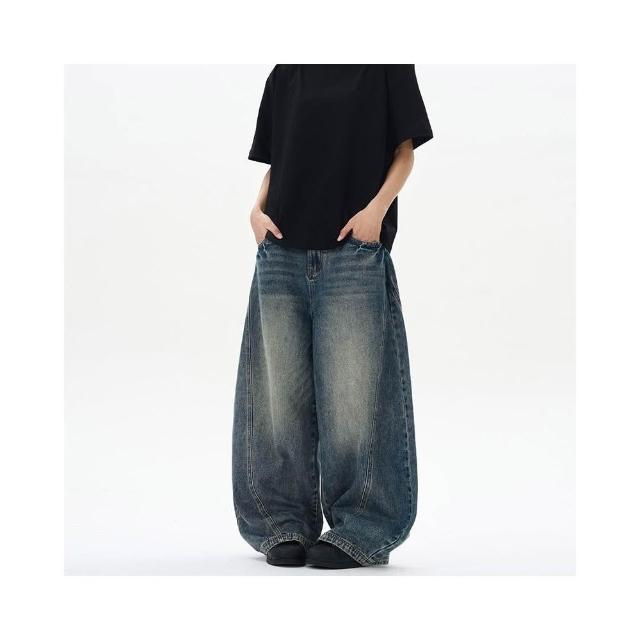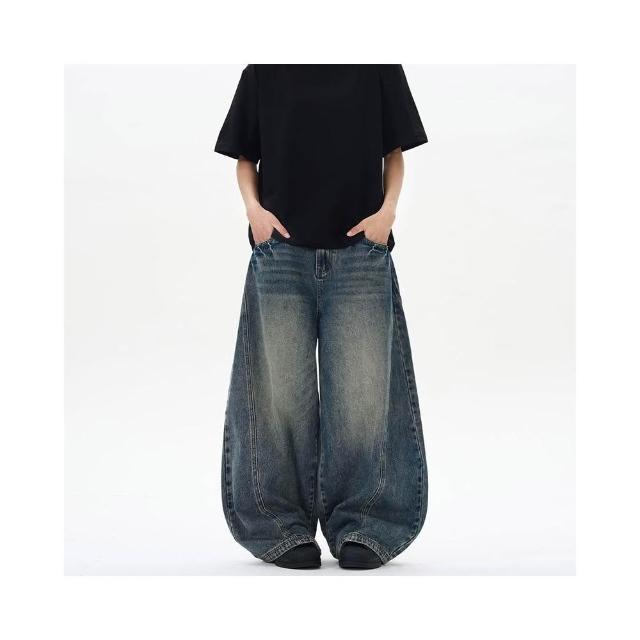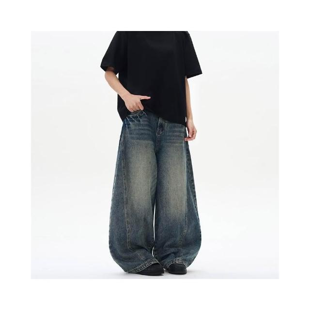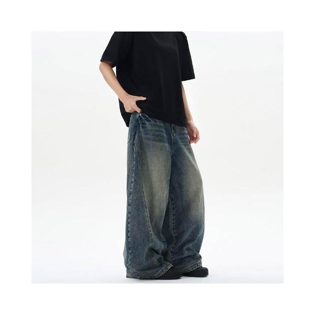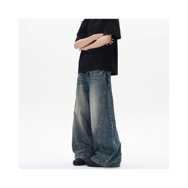 牛仔褲耐磨工作長褲彎刀褲闊腿褲堆堆褲高腰休閒褲寬鬆直筒褲水洗長褲韓國寬版牛仔寬褲夏季透氣長褲高級感牛仔長褲男工裝褲女牛仔