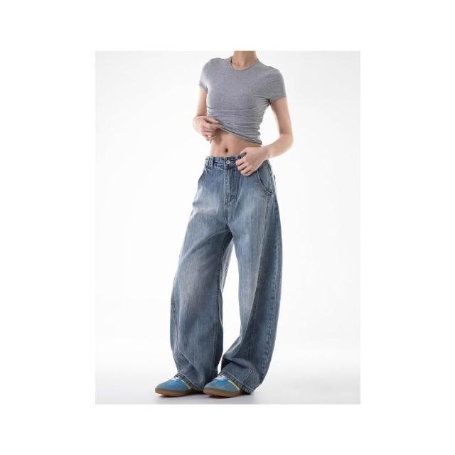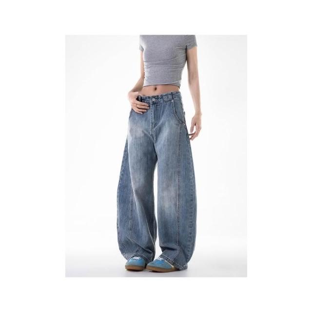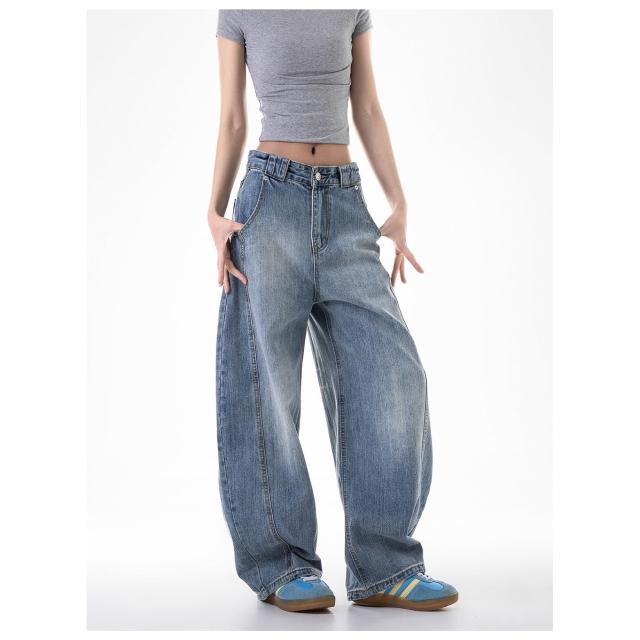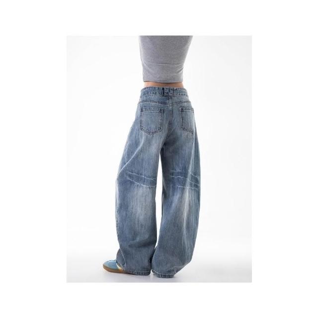 牛仔褲男寬鬆運動褲女直筒運動長褲寬鬆闊腿工作褲大碼休閒褲防風褲耐磨登山褲工裝褲低腰水洗做舊寬褲春秋冬季堆堆薄款垂感彎刀褲