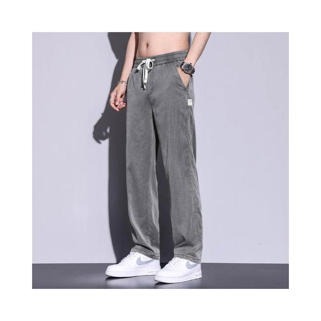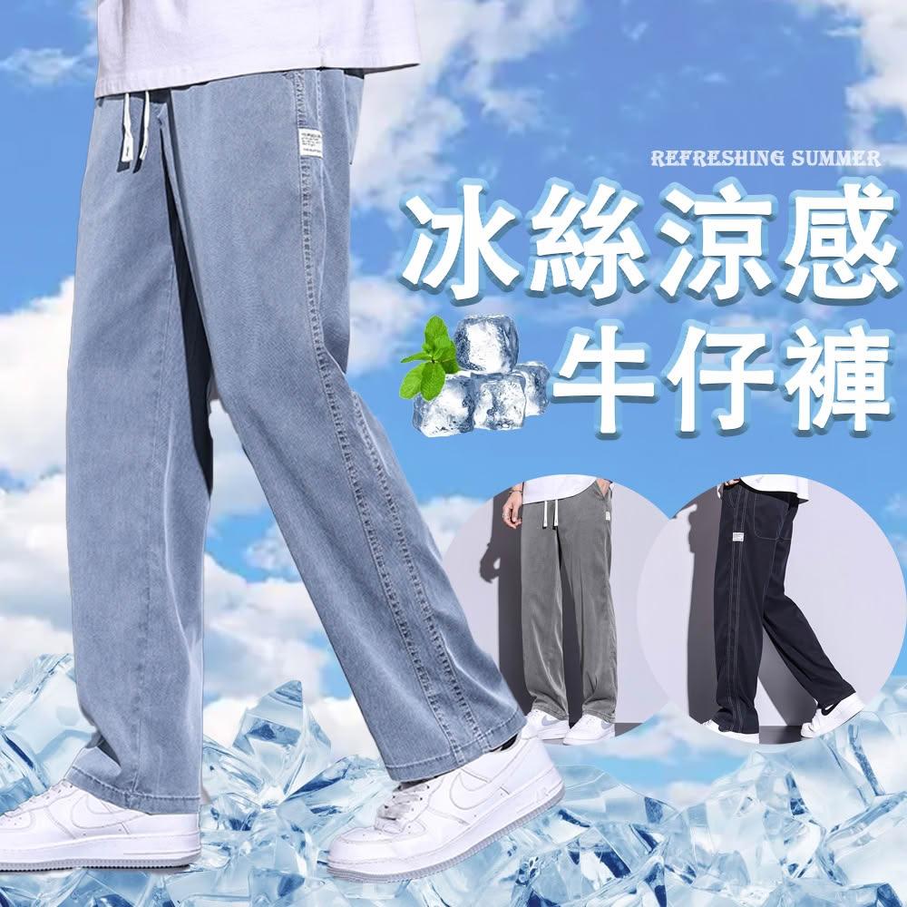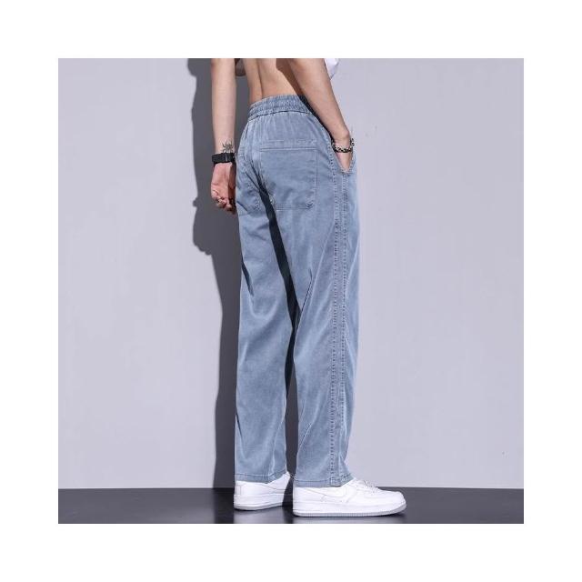 牛仔褲男運動長褲防風保暖休閒工作工裝褲男生修身涼感春秋夏季冰絲褲天絲牛仔登山彎刀寬褲薄款男士堆堆褲水洗直筒彈性韓版大尺碼