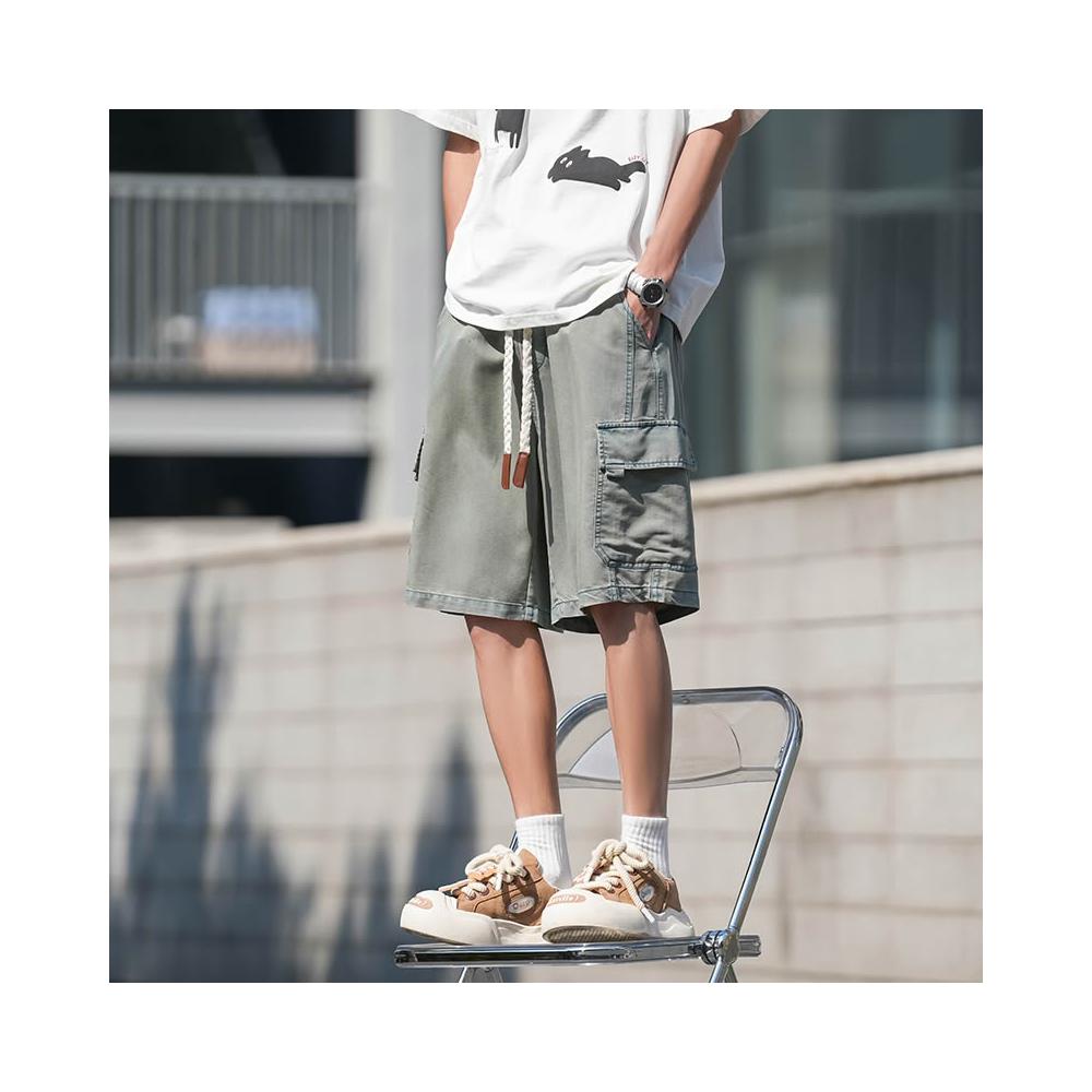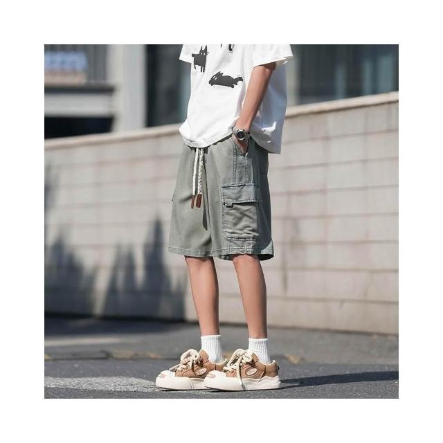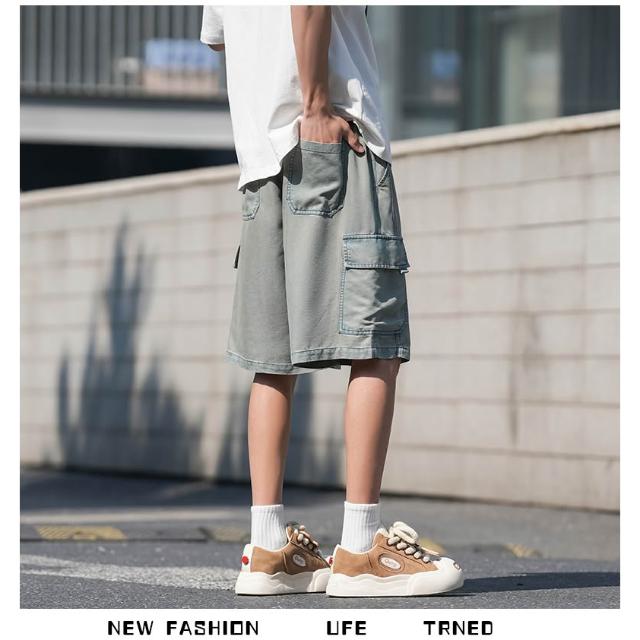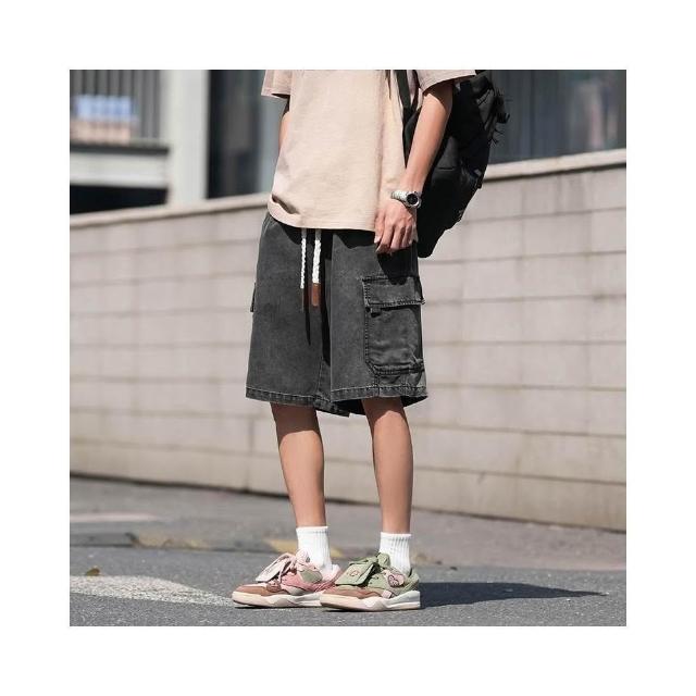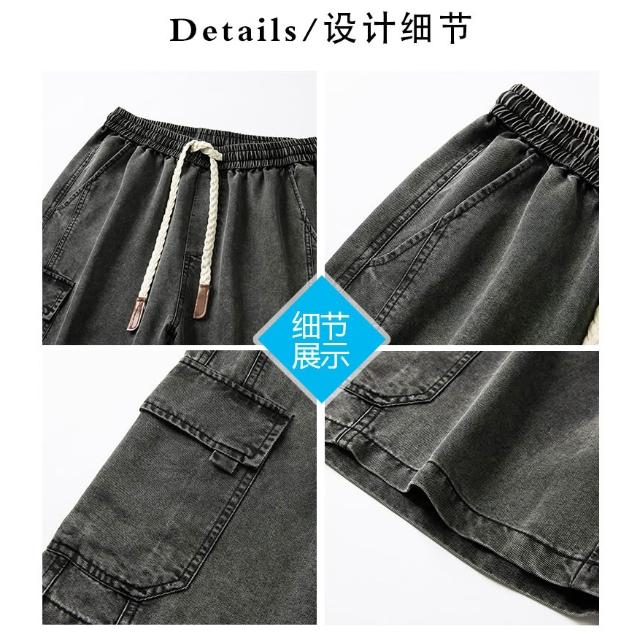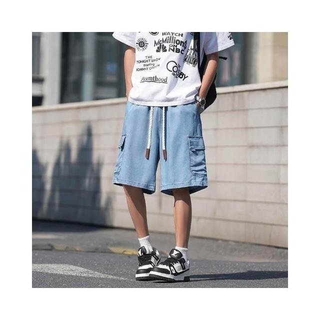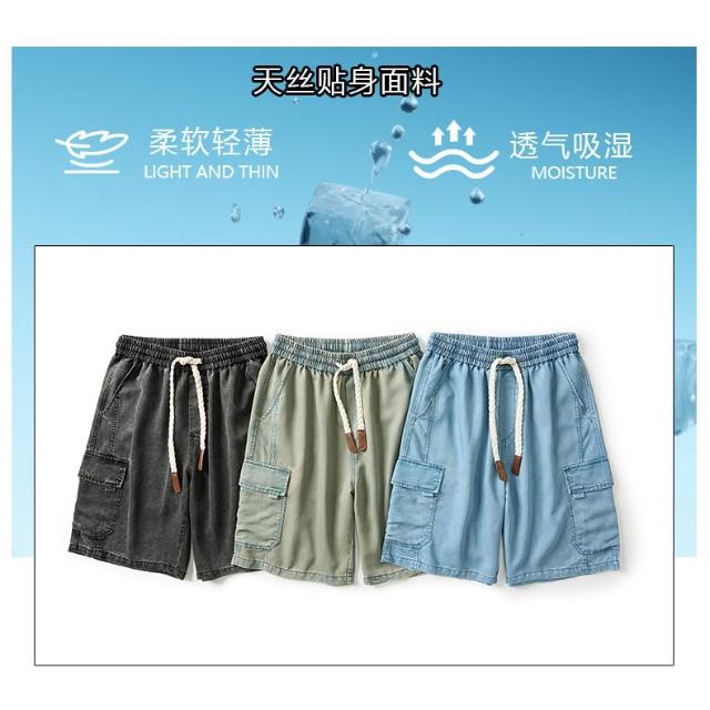 牛仔褲男短褲天絲彈性工作短褲大尺碼涼感寬褲輕薄透氣寬鬆短褲5分褲薄款低腰休閒短褲冰絲五分水洗牛仔闊腿褲大口袋工裝短褲牛仔