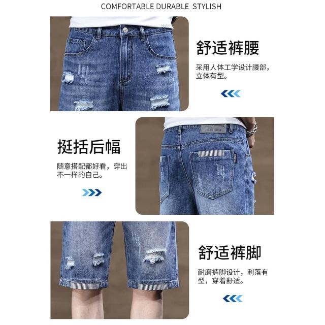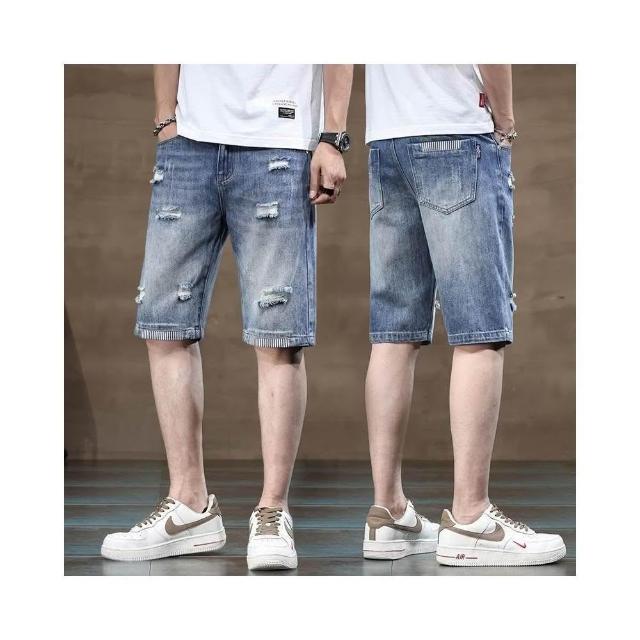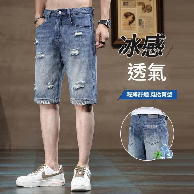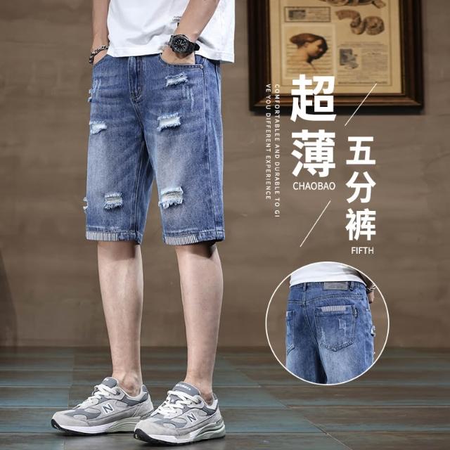 牛仔褲男短褲天絲工作褲大尺碼涼感輕薄透氣寬鬆短褲刷破五分褲薄款低腰休閒褲男冰絲涼感5分紐扣牛仔闊腿褲口袋工裝褲男牛仔破洞