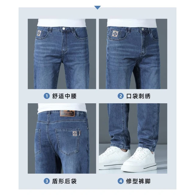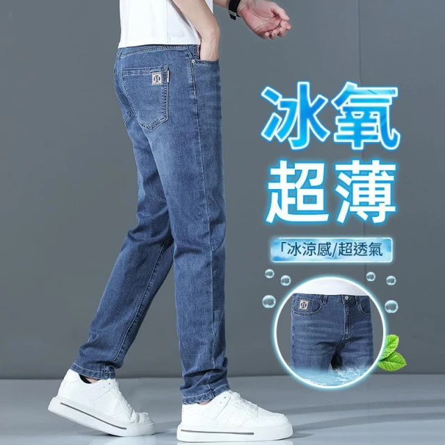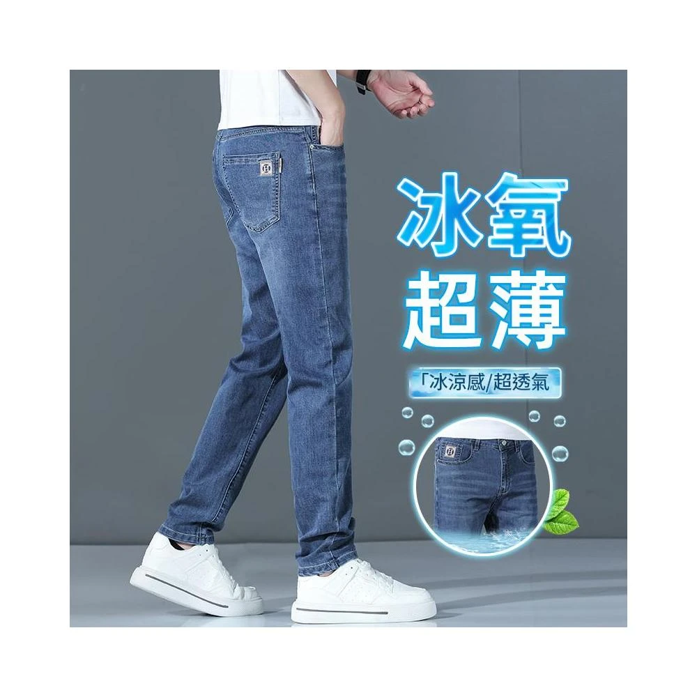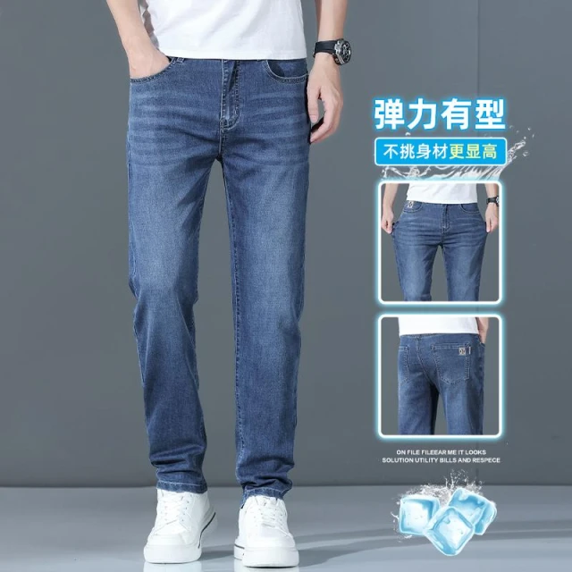 彈性天絲牛仔褲男輕薄耐磨工作長褲大尺碼冰絲休閒長褲男士直筒堆堆褲修身長褲透氣涼感牛仔褲男夏季薄款褲子男寬褲工裝褲男牛仔
