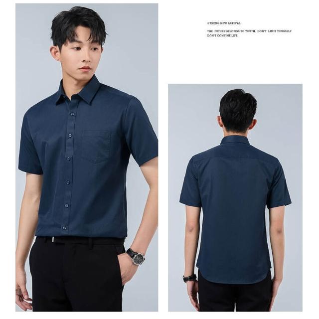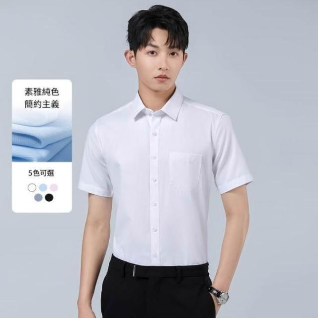 襯衫男生商務正裝白襯衫冰絲輕薄通勤西裝抗皺襯衫上班工作短袖上衣修身免燙襯衫男裝韓版大尺碼休閒耐磨舒適透氣翻領素色棉質開衫