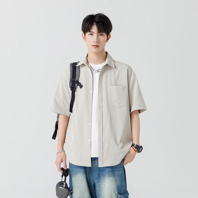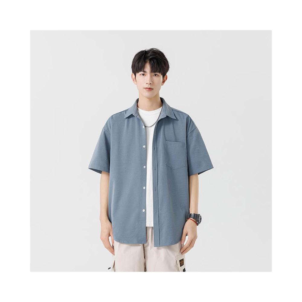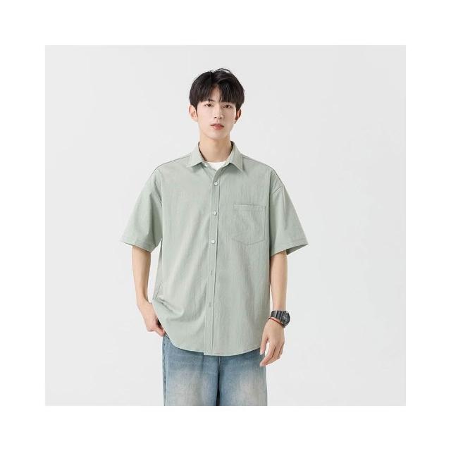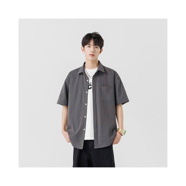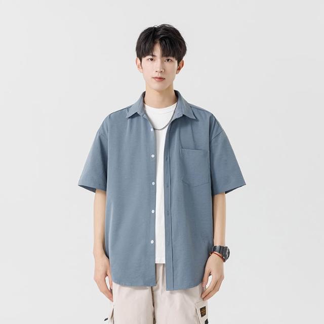 襯衫男輕薄透氣寬鬆休閒通勤耐磨工作夏季短袖襯衫外套彈性大尺碼吸濕排汗免燙防皺素色日系翻領口袋外搭襯衫開衫半袖落肩上衣T恤
