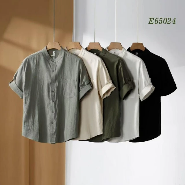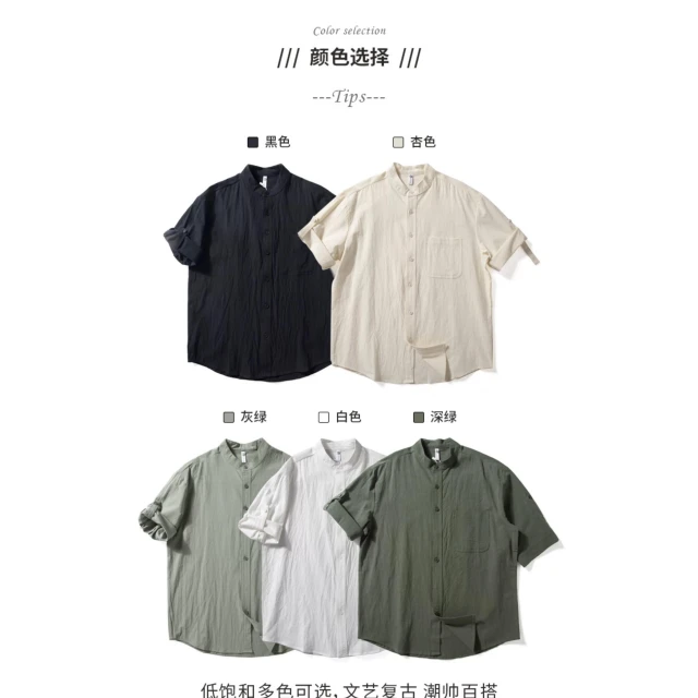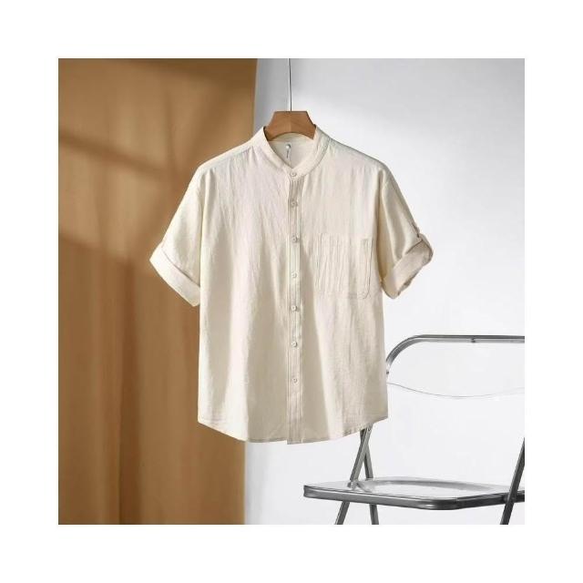 襯衫 休閒棉麻襯衫 短袖上衣 夏天男生襯衫 寬鬆純棉襯衫 襯衫外套 短袖襯衫男 透氣短袖外套 短袖立領襯衫 男生棉麻上衣