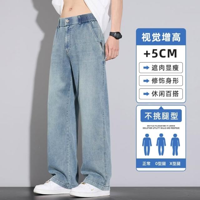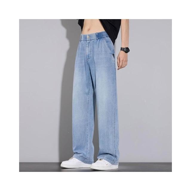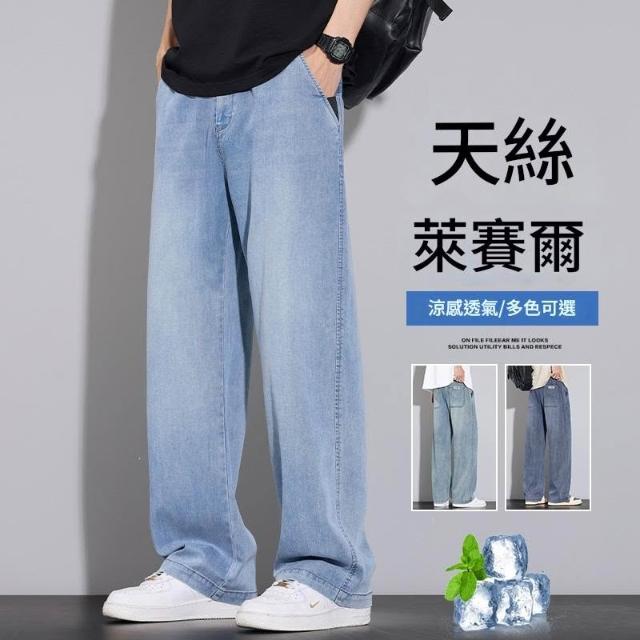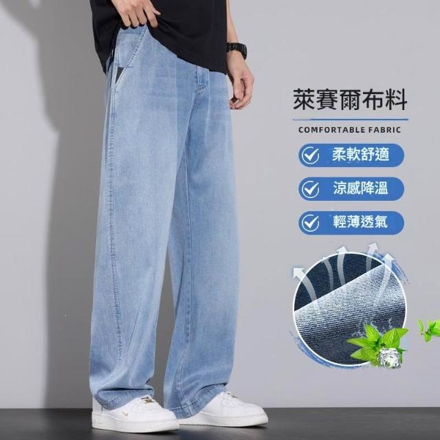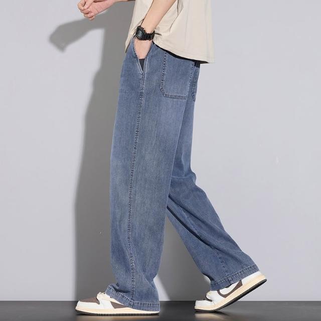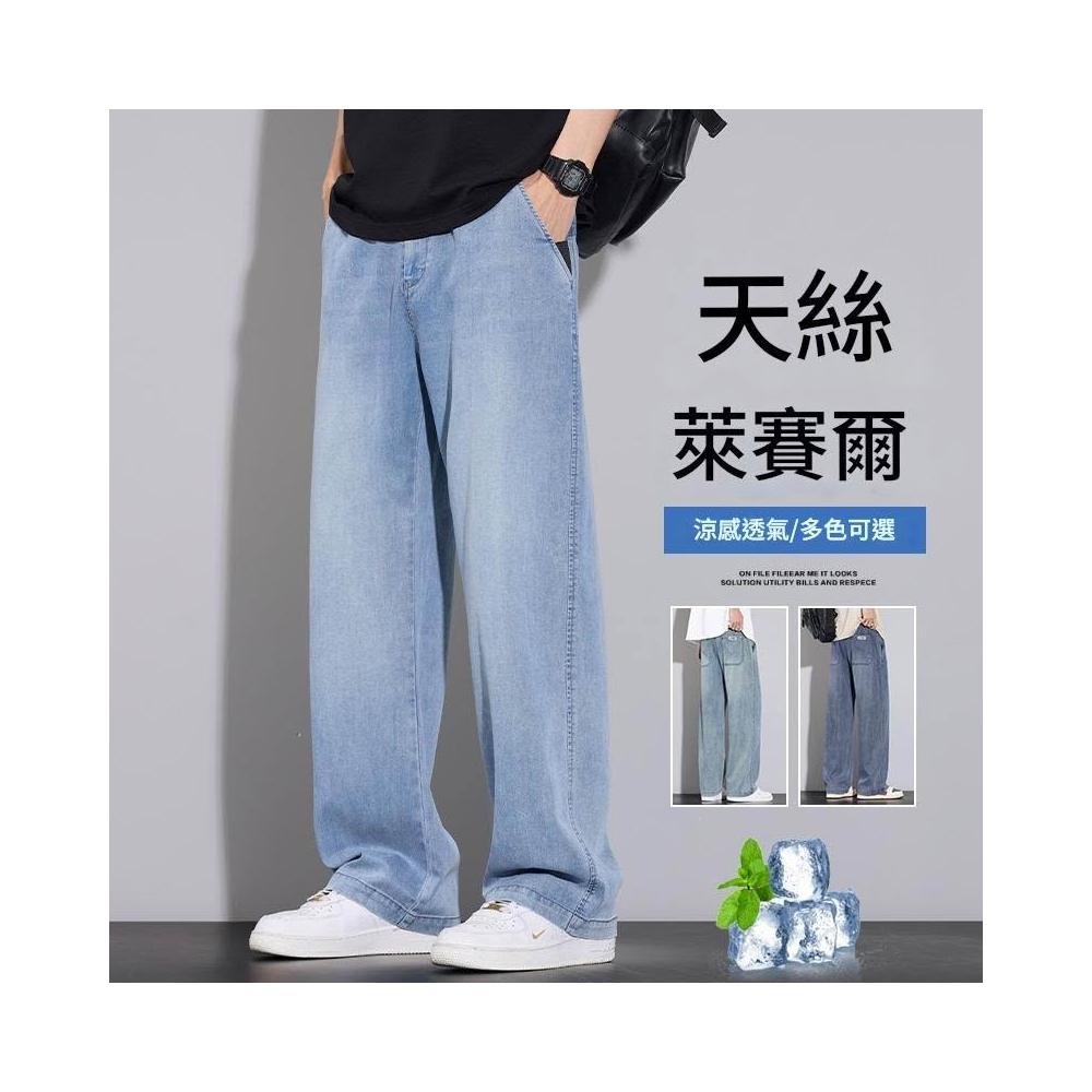 牛仔褲夏天工作褲男生闊腿涼感長褲夏季冰絲休閒褲天絲牛仔寬褲薄款運動長褲男士堆堆褲水洗直筒彈性長褲男韓版寬版大碼口袋長褲男