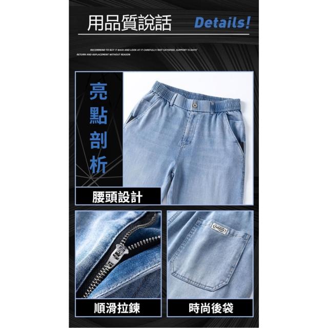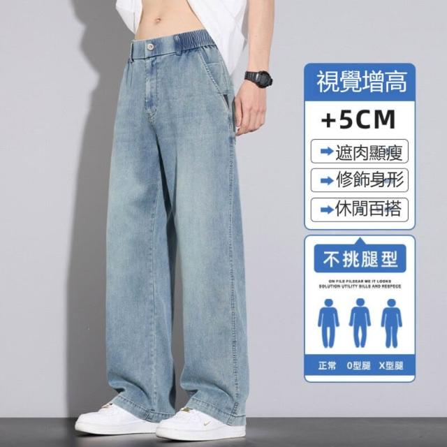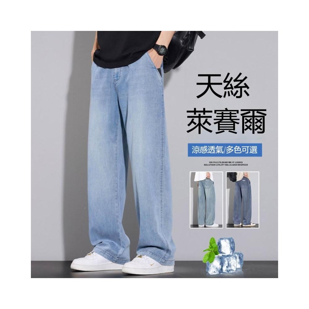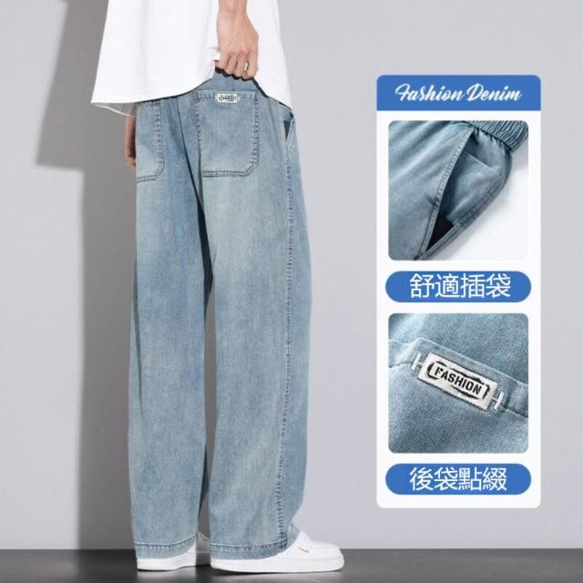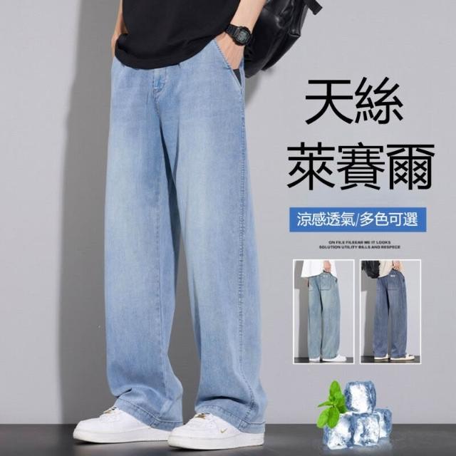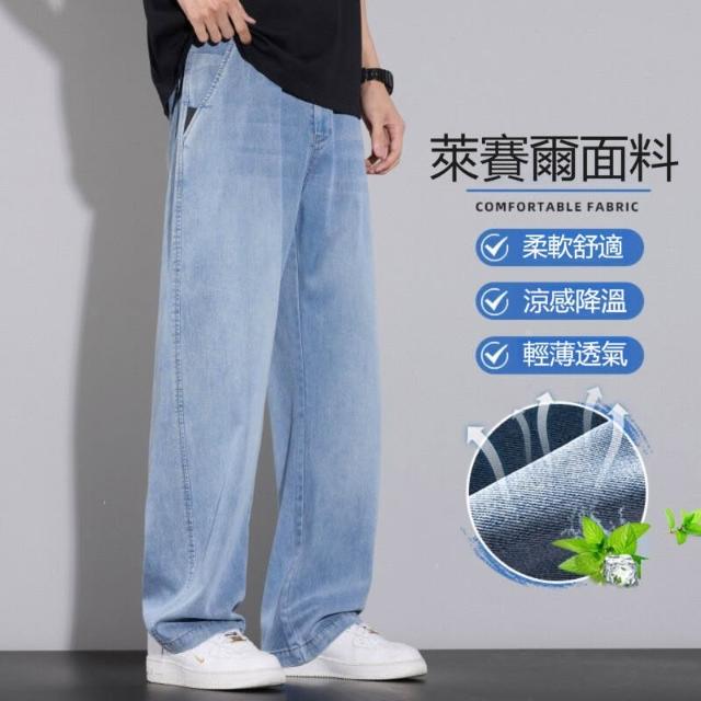 牛仔褲男運動長褲防風休閒褲工作褲工裝褲闊腿褲涼感春秋夏天冰絲褲天絲牛仔登山褲彎刀褲寬褲薄款堆堆褲水洗彈性韓版大尺碼直筒褲新年衣服