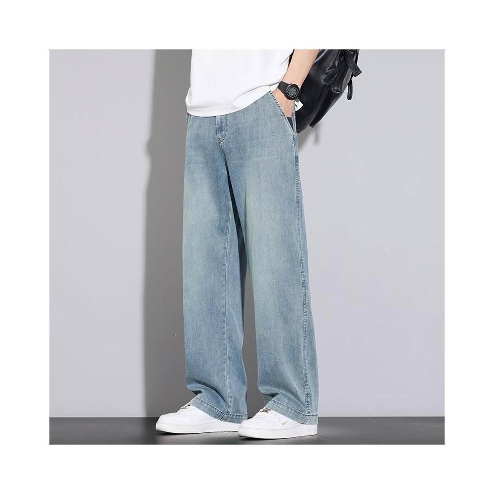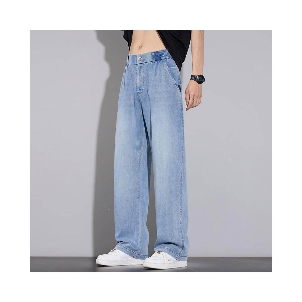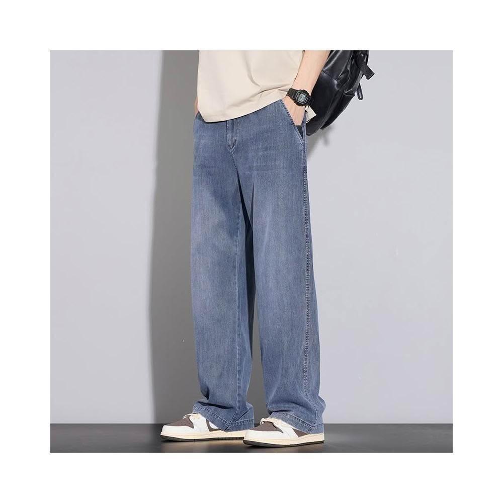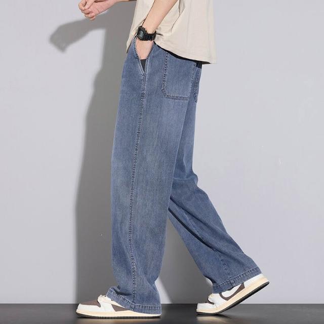 牛仔褲男運動長褲防風休閒褲工作褲工裝褲闊腿褲涼感春秋夏天冰絲褲天絲牛仔登山褲彎刀褲寬褲薄款堆堆褲水洗彈性韓版大尺碼直筒褲新年衣服