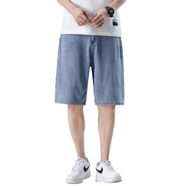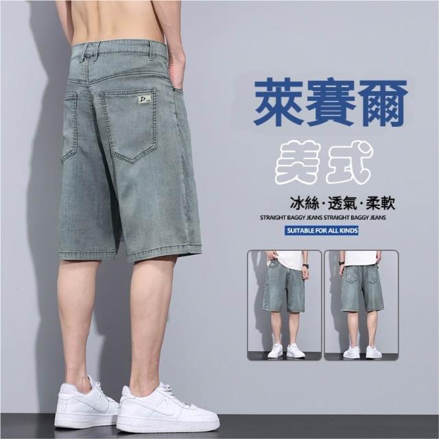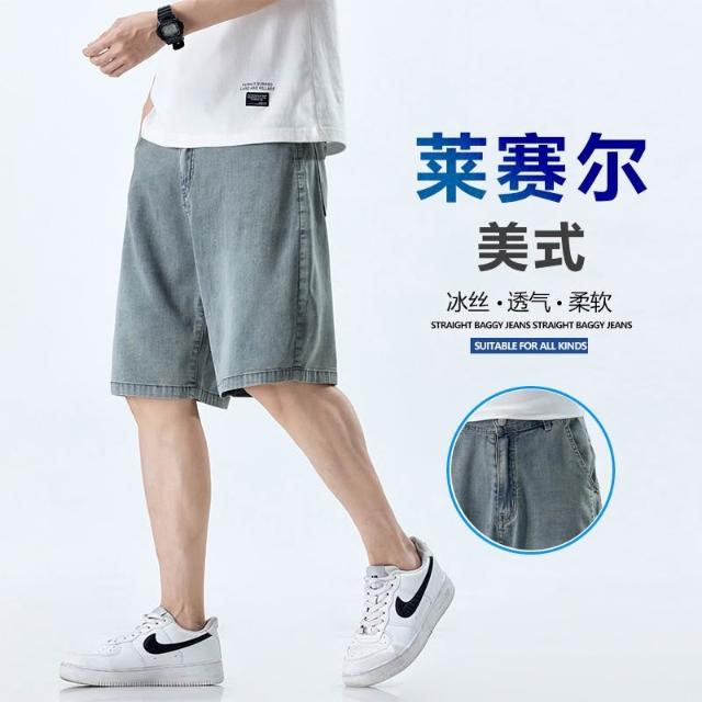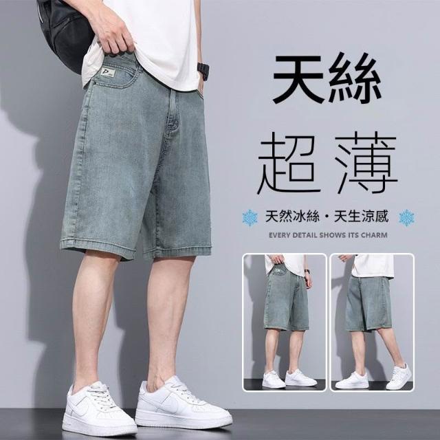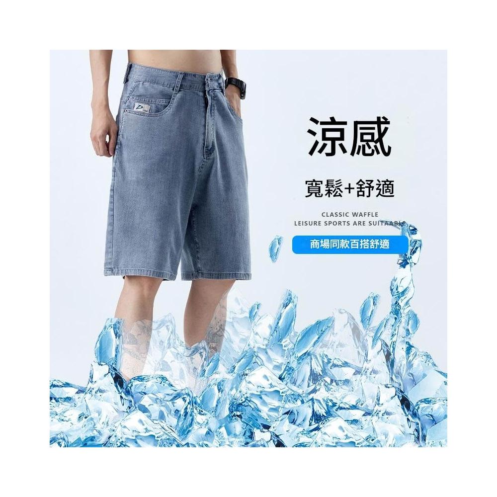 夏季闊腿冰絲牛仔褲五分牛仔褲牛仔褲男透氣牛仔短褲天絲牛仔褲男生涼感短褲夏季薄牛仔短褲男牛仔五分褲冰絲涼感褲夏天彈性牛仔褲