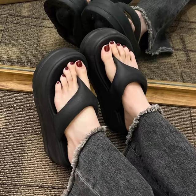 拖鞋女鞋室內拖涼拖厚底室外涼鞋女夏季免綁帶夾腳拖女坡跟鞋外穿透氣舒適休閒鞋輕量沙灘鞋清涼Y拖增高巴西人字拖高顏值柔軟涼拖