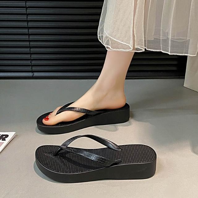 拖鞋女鞋室內拖涼拖厚底室外涼鞋女夏季免綁帶夾腳拖女坡跟鞋外穿增高巴西人字拖透氣舒適休閒鞋輕量沙灘鞋清涼Y拖高顏值涼拖女
