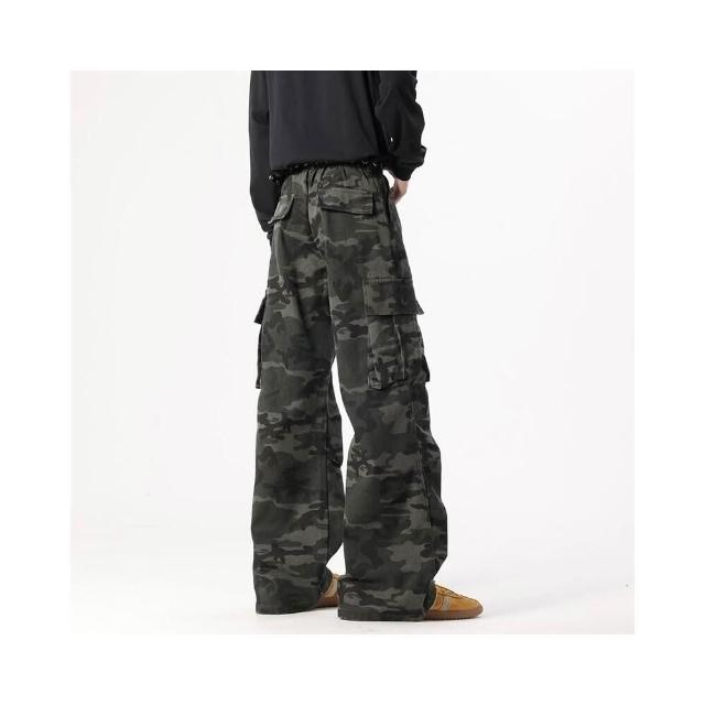 牛仔闊腿迷彩長褲通勤夏季寬褲女大碼高腰直筒褲寬鬆耐磨工作輕薄透氣垂感休閒拖地彎刀褲水洗牛仔褲女堆堆多口袋工裝褲女牛仔春秋