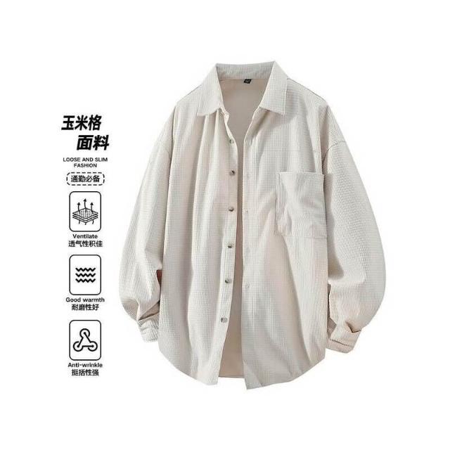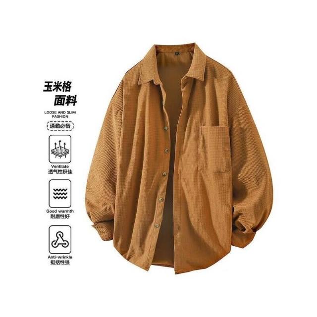 長袖襯衫男女2025新款燈芯絨菠蘿格襯衫夾克秋冬輕奢潮牌寬松長袖潮流百搭休閑美式日系上衣透氣耐磨挺括上班通勤男裝翻領開衫