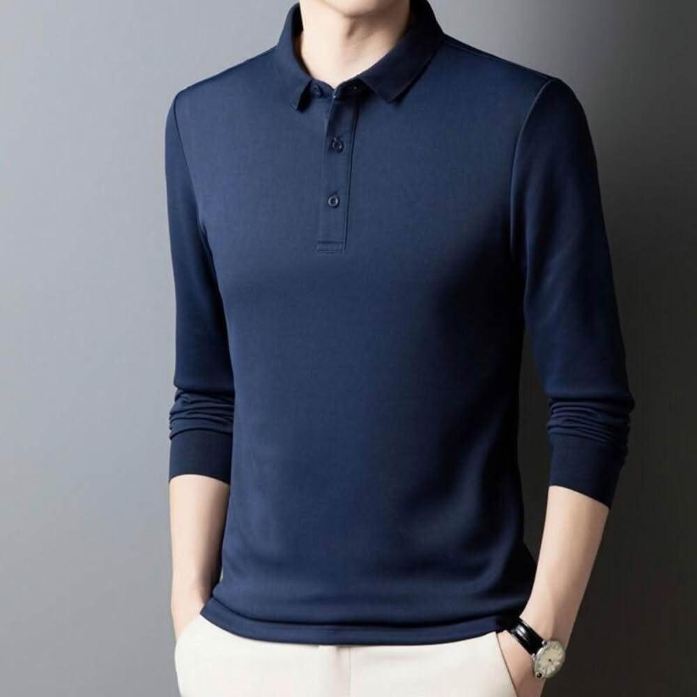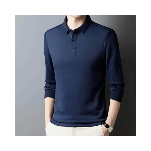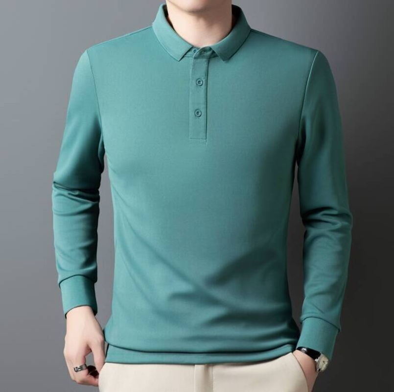 長袖polo衫男大尺碼立領商務修身正肩短袖男款休閒長袖運動衫春秋季高爾夫球衫爸爸高級感年輕男裝t恤純棉質男士打底工作衫
