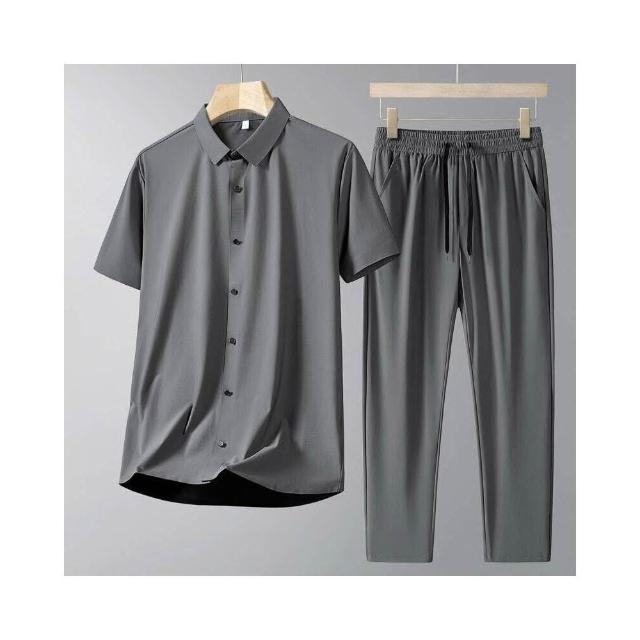運動套裝男polo衫短袖上衣大尺碼涼感衣短褲吸濕排汗衣薄冰絲短袖T恤褲子男生登山透氣速乾褲子休閒套裝高爾夫球衣羽球衣服 夏天寬鬆t恤跑步健身衣防曬褲五分寬褲運動短褲兩件式套裝居家舒適套裝中年男裝爸爸兩件套