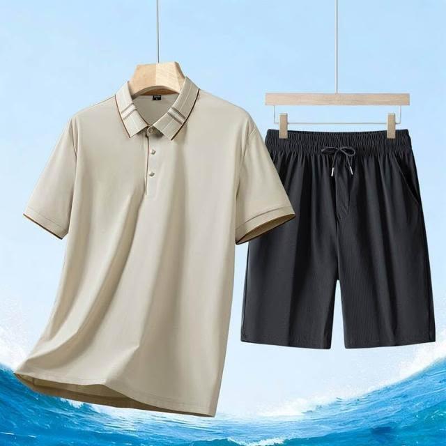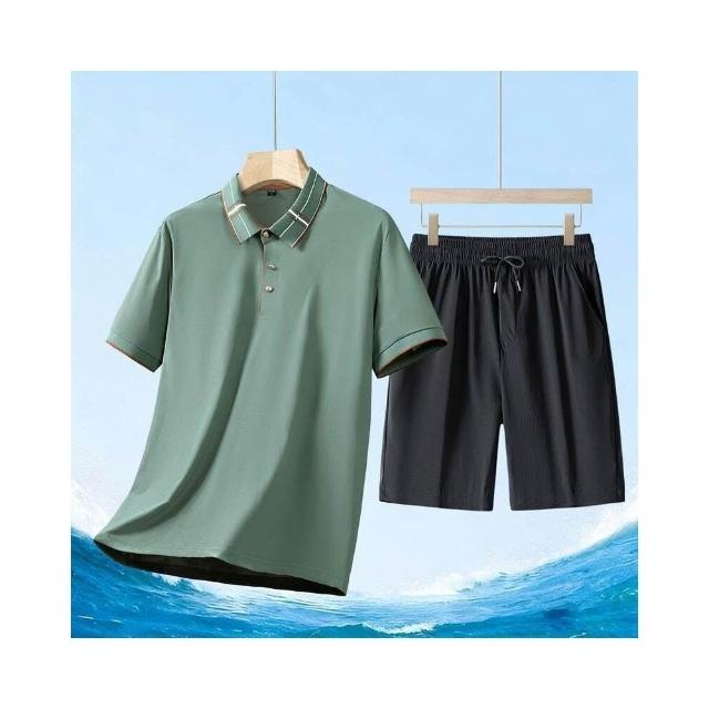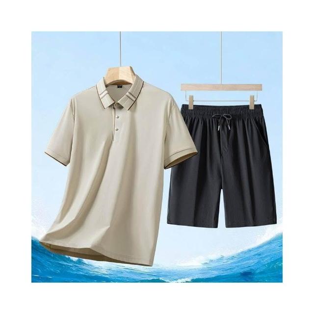 運動套裝男polo衫短袖上衣大尺碼涼感衣短褲吸濕排汗衣薄冰絲短袖T恤褲子休閒套裝男生羽球衣服高爾夫球衣登山透氣速乾褲子 夏天居家舒適套裝運動寬短褲兩件式套裝中年爸爸男裝兩件套跑步健身衣寬鬆t恤防曬褲