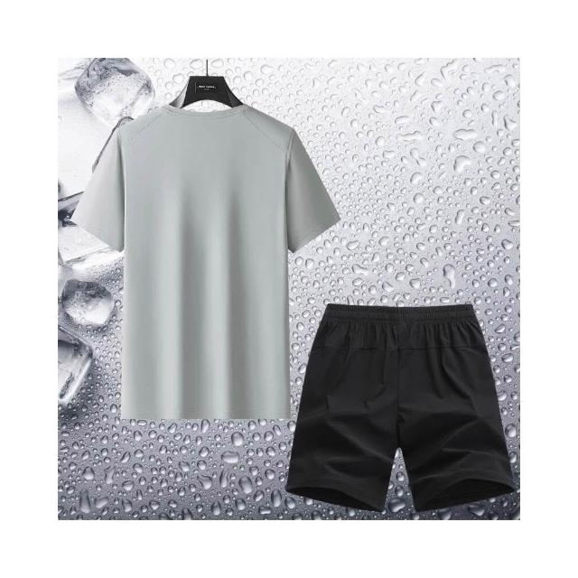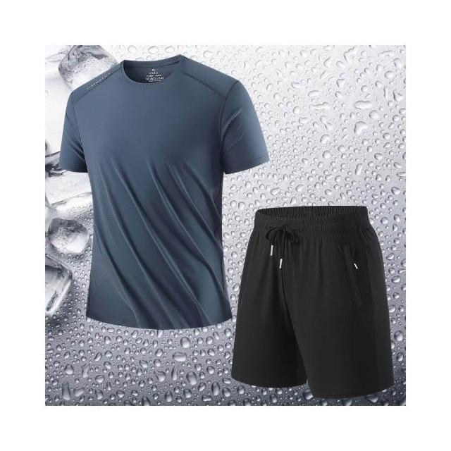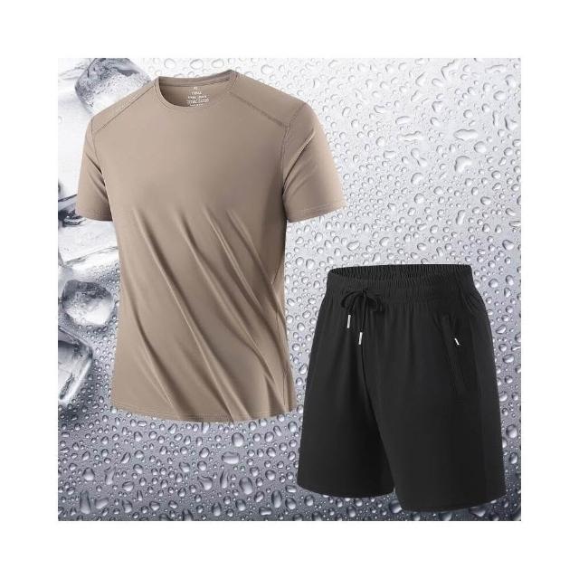 運動套裝男短袖上衣大尺碼涼感衣短褲子吸濕排汗衣薄男生冰絲短袖T恤褲子登山透氣速乾褲休閒套裝高爾夫球衣羽球衣服 夏天居家兩件式套裝舒適套裝寬鬆t恤男裝跑步健身衣運動短褲短分寬褲防曬褲中年爸爸兩件套