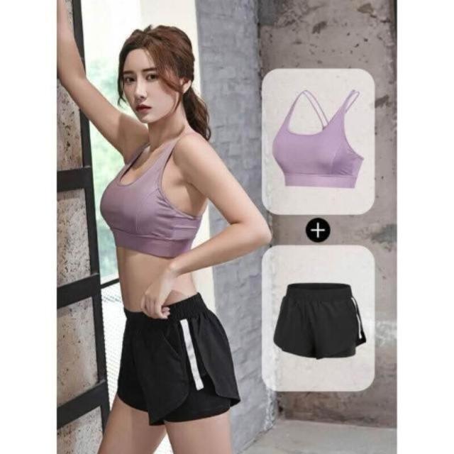 涼感衣女短袖T恤女上衣瑜伽服運動健身服空調服速乾衣冰絲衣運動內衣套裝防震透氣瑜伽套裝跑步訓練健身文胸運動健身跑步美背性感背心短褲速幹夏季瑜伽服套裝