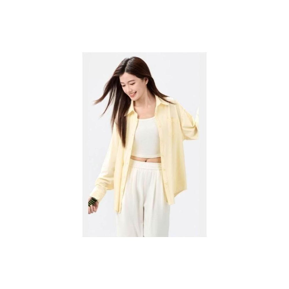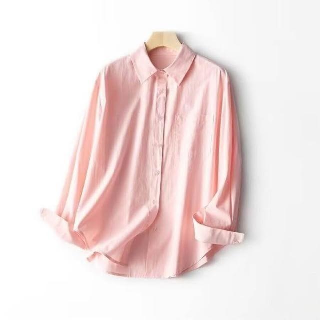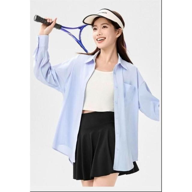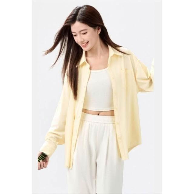 襯衫春夏秋天輕薄透氣襯衫女日常通勤打底女襯衫長版襯衫秋季寬鬆休閒長袖純色簡約防曬襯衫v領女生白襯衫防曬衣男皮膚衣男女同款開衫襯衫