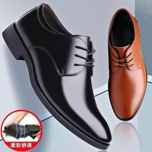 大尺碼 皮鞋男厚底大尺碼男士正裝商務皮鞋輕便潮流鞋低幫英倫尖頭結婚新郎皮鞋學生休閒黑增高紳士鞋綁鞋帶防水止滑男鞋久站不累腳懶人鞋