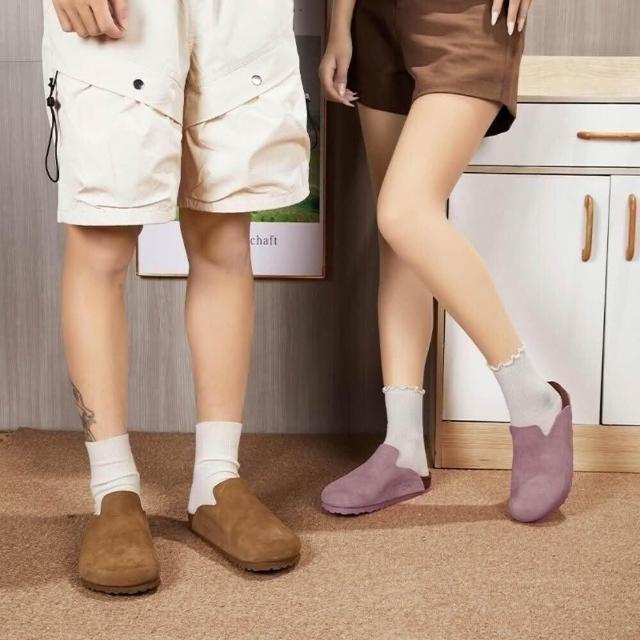 勃肯鞋軟木真皮男女大尺碼row風軟面懶人一腳蹬厚底大頭半拖秋款寬楦平底休閑鞋止滑耐磨穆勒鞋經典款麂皮韓版包頭時尚半拖鞋
