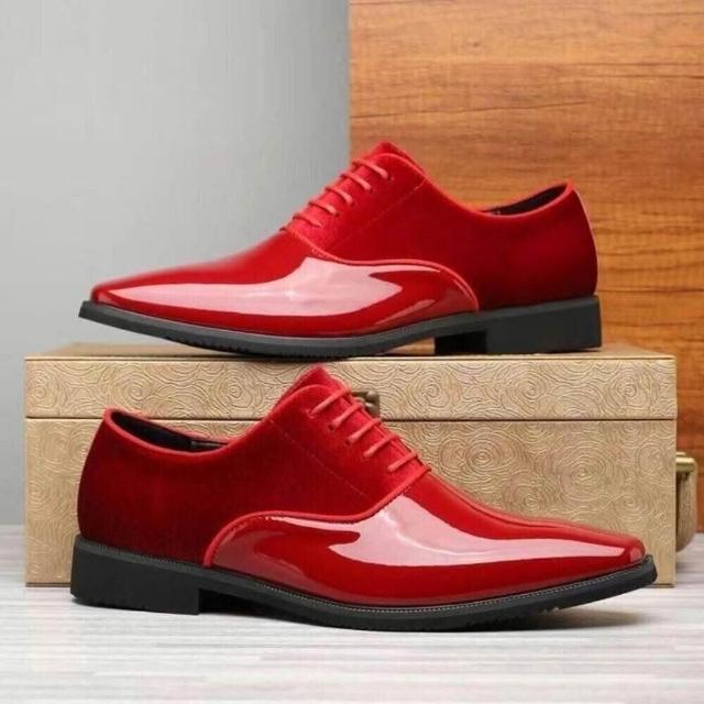 亮面漆皮時尚休閑皮鞋皮鞋男厚底大尺碼男士正裝商務皮鞋輕便潮流鞋低幫英倫尖頭結婚新郎皮鞋學生休閒黑增高紳士鞋綁鞋帶防水止滑男鞋久站不累腳懶人鞋