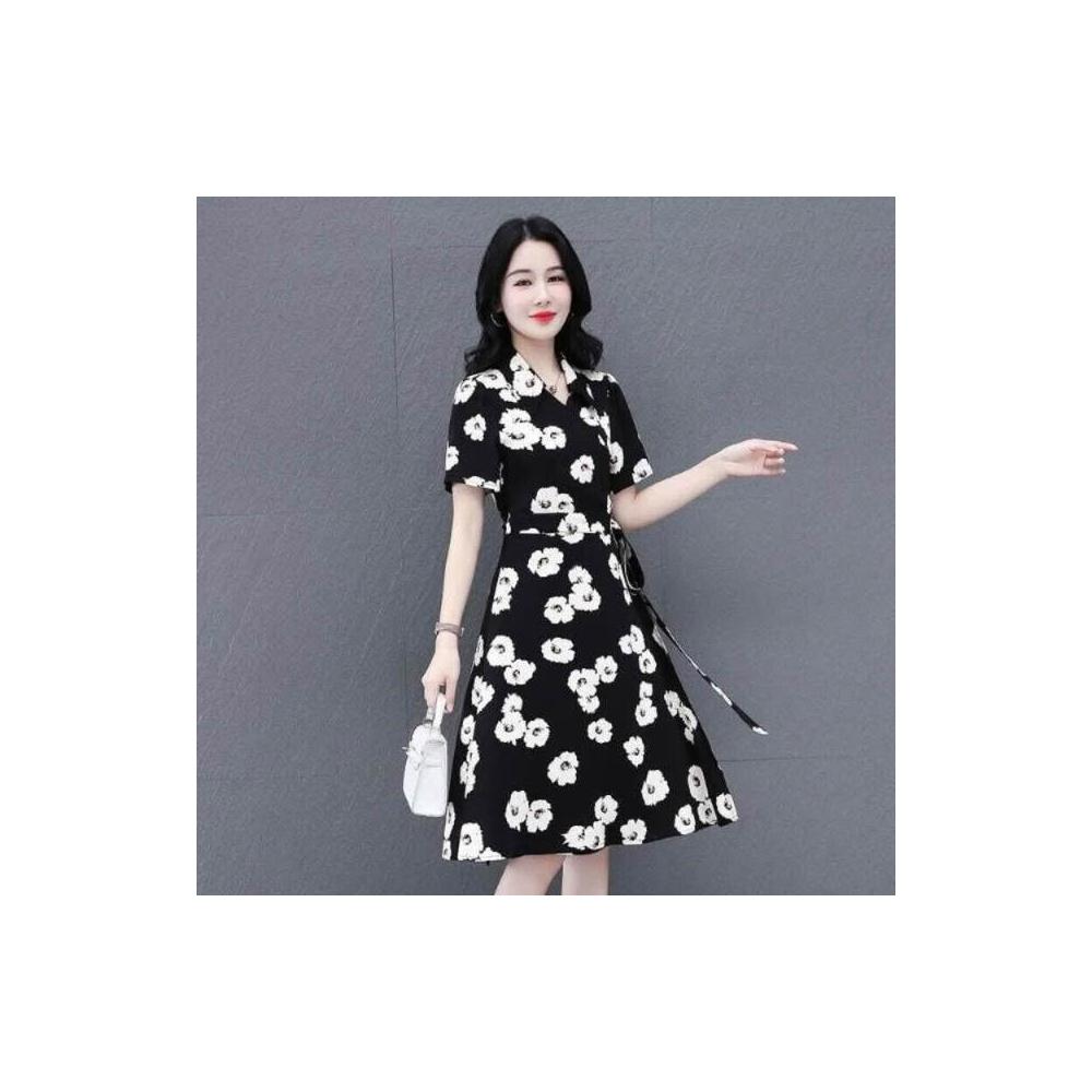 洋裝連身裙女直筒連身裙連身洋裝顯瘦遮肚寬鬆通勤雪紡百搭春夏媽媽穿搭翻領氣質連衣裙梨形身材a字裙小個子收腰顯瘦裙通勤洋裝度假百搭女溫柔風大尺碼