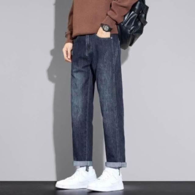牛仔褲男士秋季復古水洗寬松黑灰直筒錐形牛仔長褲設計感高棉舒適休閑褲長褲輕商務簡約長褲通勤直筒褲運動長褲休閒寬鬆高級闊腿褲